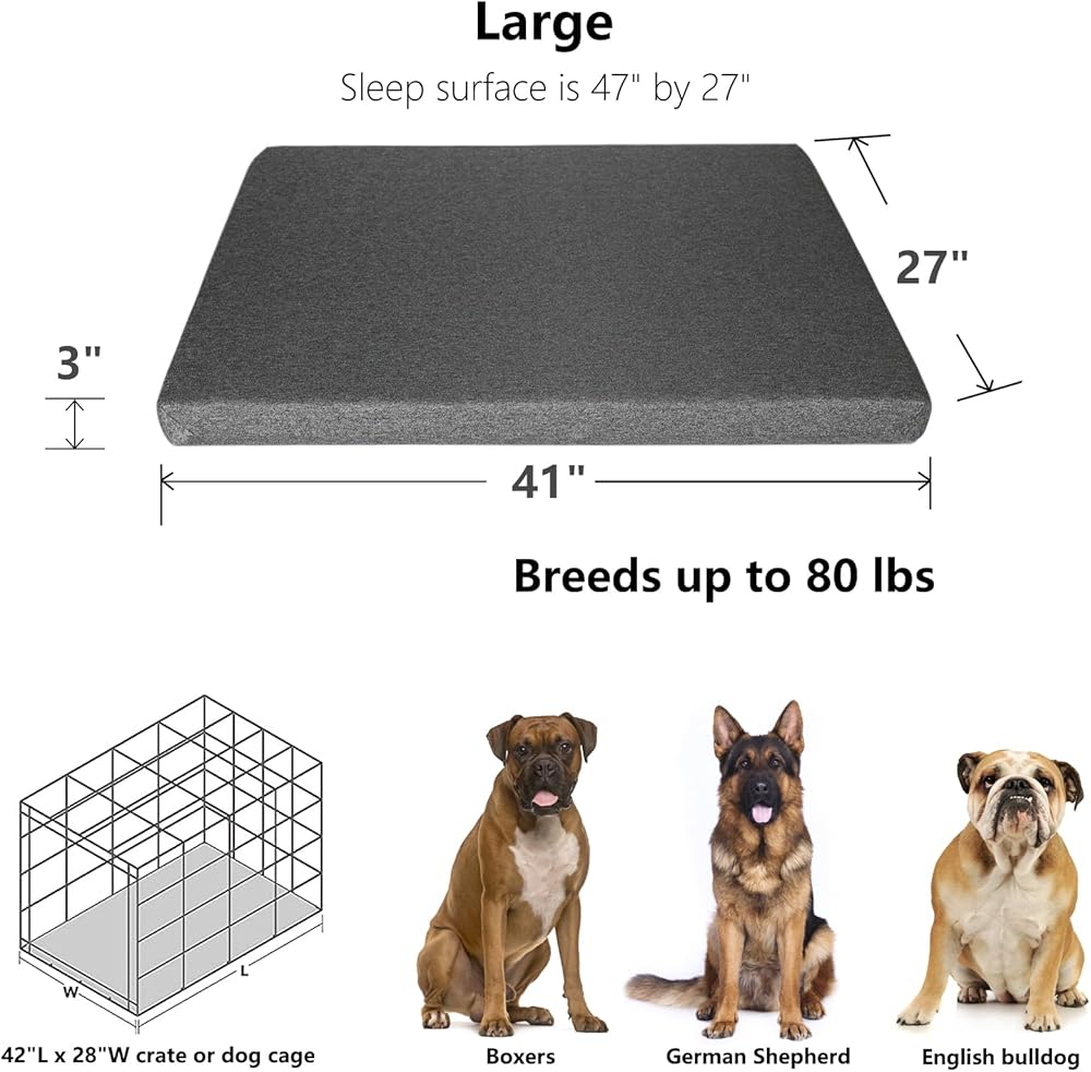 Designed for 42 inch dog crate - The chew proof dog bed measures 41" x 27" x 3", making it an ideal fit for 42" x 28" crates, kennels or dog cages. It can also be used independently and is suitable for dogs weighing between 50 to 100 pounds.