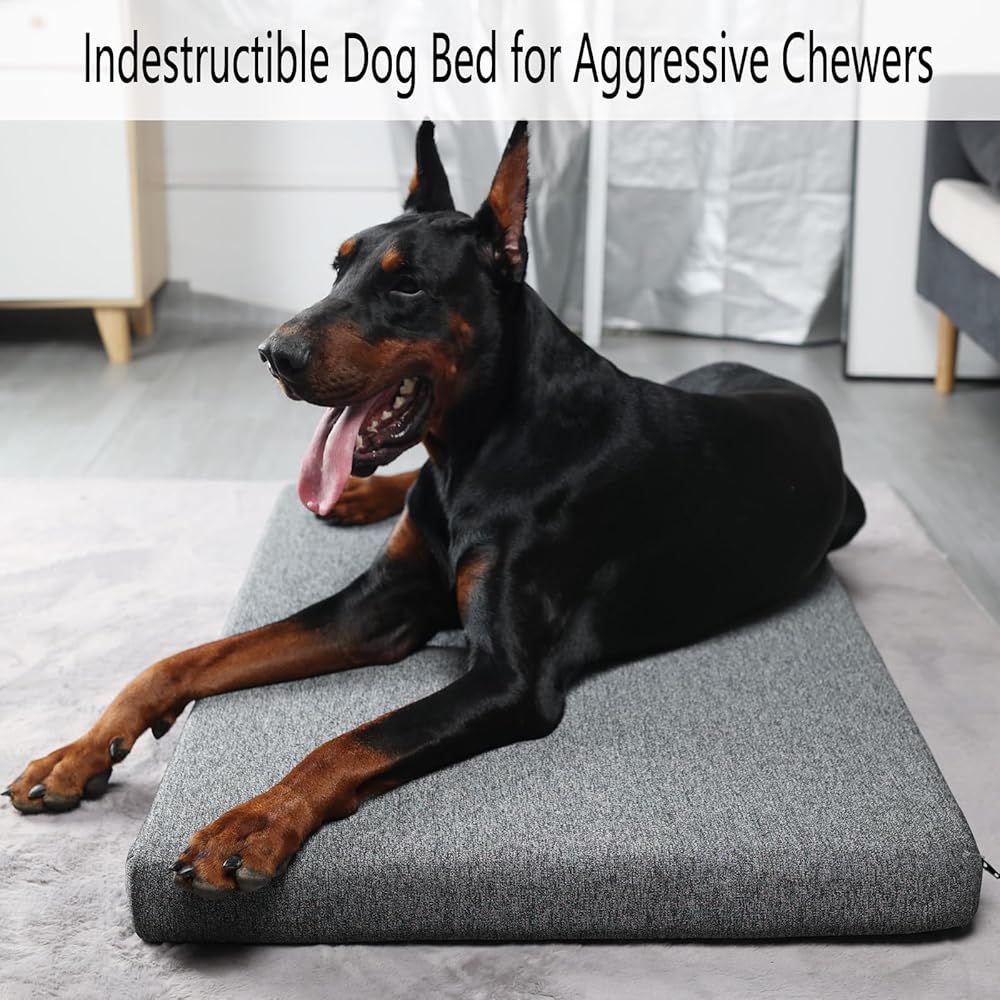 Chew Proof Dog Beds for Large Dogs - Washable,42inch Indestructible Dog Crate Bed for Aggressive Chewers Large Breed Durable and Waterproof Orthopedic Foam Mat,41"x27", Dark Grey