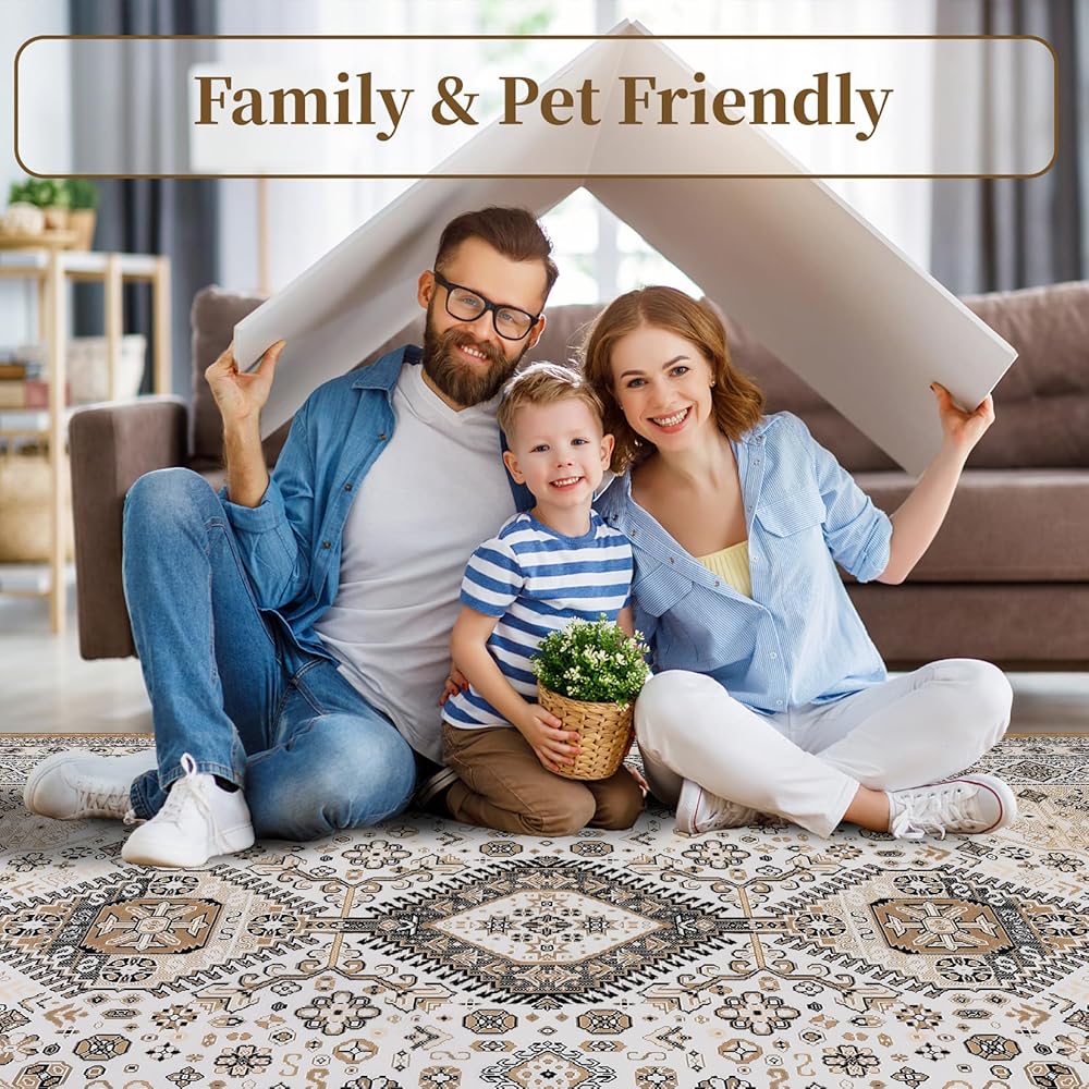✨ [ANTI-SLIP SAFET]-Our low pile rugs are designed to be resilient against everyday wear and tear, non-slip, and easy to store. The non-slip backing firmly grips the ground to prevent sliding, making this rug perfect for high-traffic areas in your home that are safe for everyday indoor use with kids or pets.