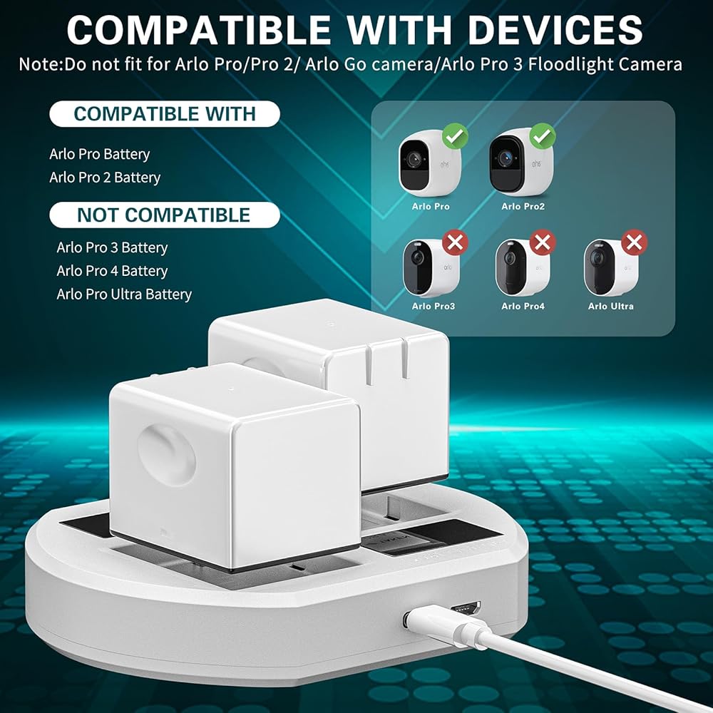【Notice】Taken replaceable batteries for arlo pro and this charger are perfect match. (battery asin:B0BZNM7HK6)