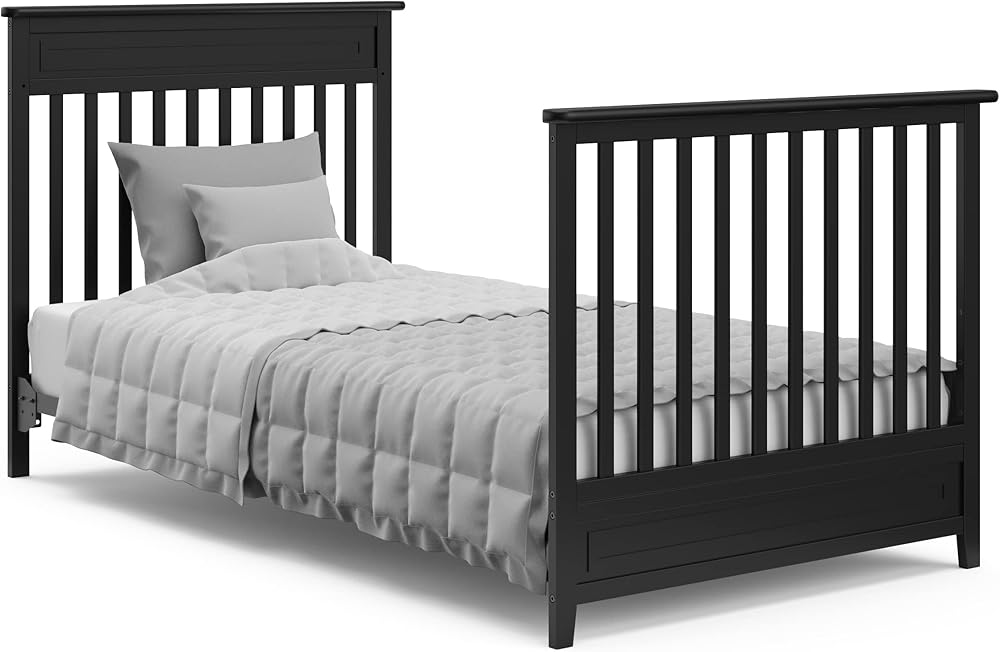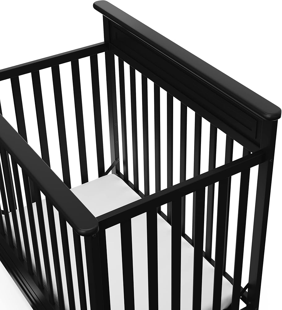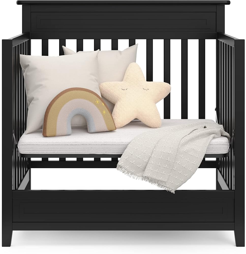 Storkcraft Petal 4-in-1 Convertible Mini Crib – GREENGUARD Gold Certified, Converts to Daybed and Twin-Size Bed, Bonus 2.75-inch Mini Crib Mattress Included, Ideal for Small Spaces (Black)
