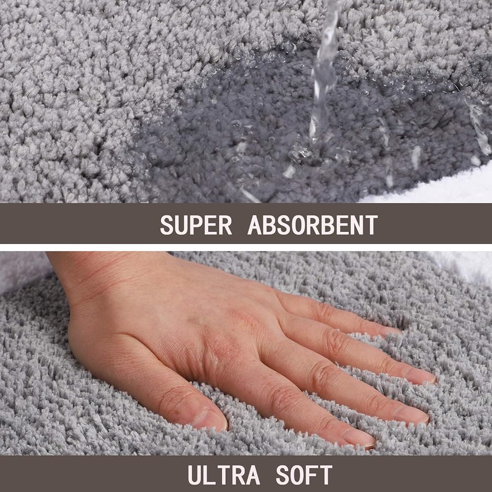 Super Absorbent Material:The microfiber is much more absorbent than other materials which can allow water to be absorbed into the mat quickly,so you can worry less about wet floors.When you walk out of the bathtub,fluffy and soft high pile could soothes and relaxes tired feet,and shields toes from the cold floor