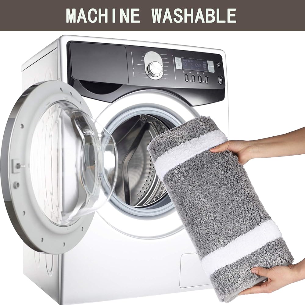 Machine Washable:Our bathroom rug is easy to clean,the washing effect is very good whether hand wash or machine wash.If you want to choose machine washing,only need to machine wash with cold water and mild detergent in low speed mode,then hang to dry or air dry flat.The bath rugs can be machine washed time and time,and without worrying about it causing the fibers to fall off
