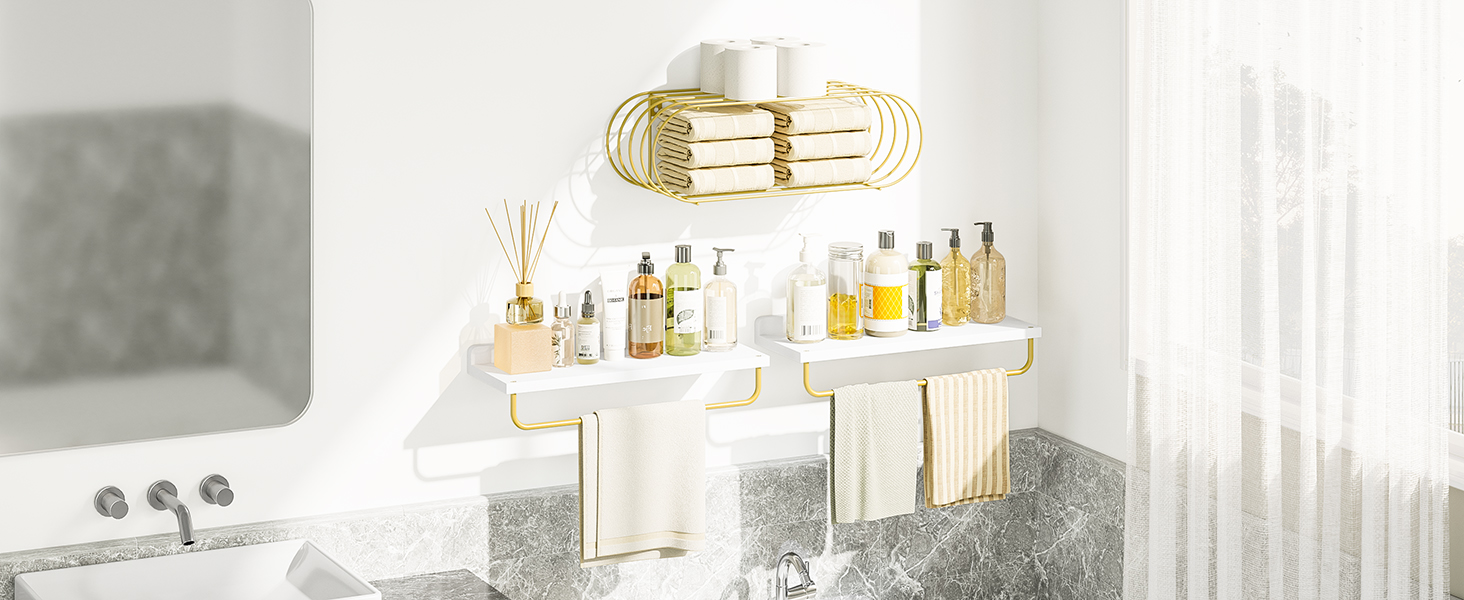 Unique Minimalist Design - These wall mounted shelves are minimalist designs with modern artistic aesthetic. Simple & smooth lines and classic & elegant color scheme allow that they can perfectly fit any style of home decoration style. The unique lantern shape shelf can also add a new character to your home. Choose from white or gold metal frames with wooden or wire rod shelves to create a chic and contemporary look in your home.