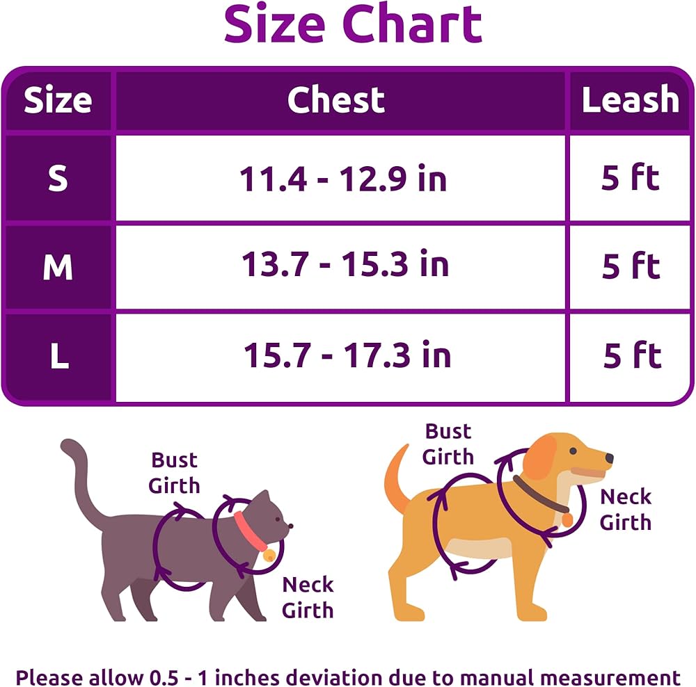 SIMENA Harness and Leash Set is a high quality and durable outdoor pet product. Your pet dog or cat will feel free when he is walking in SIMENA dog harness. It is made of high quality, breathable mesh fabric, which is machine washable and dryable. We are offering different sizes for different breeds. Please carefully measure your dog/cat before purchasing.