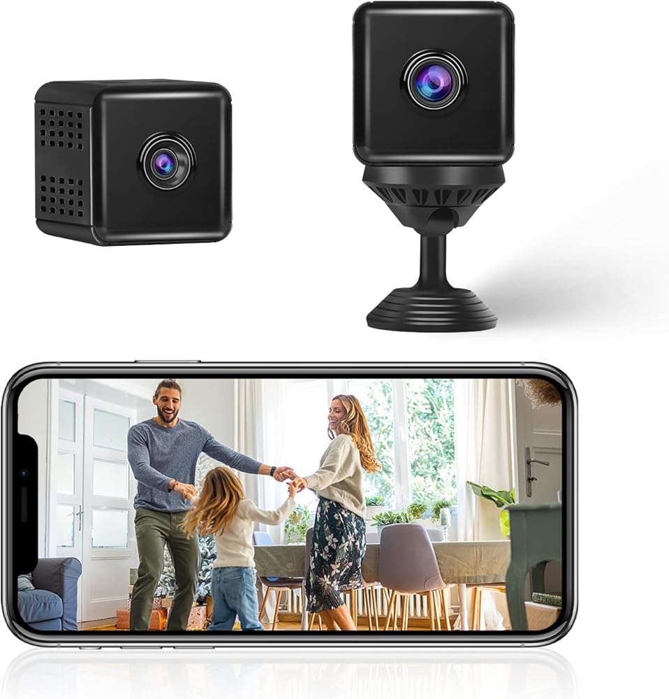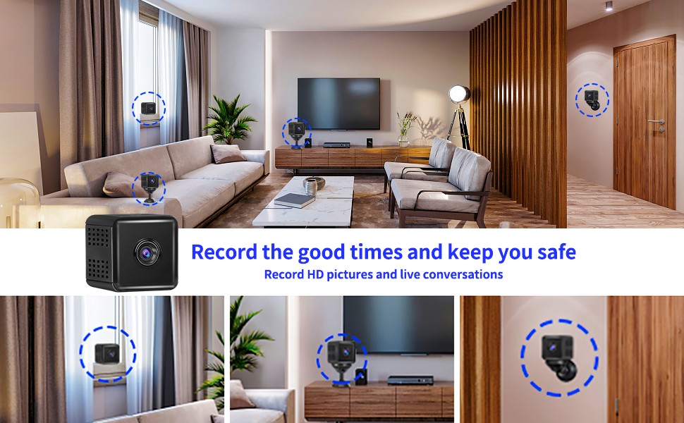 【Easy to install 】The small camera is wireless and battery-powered which means you can place, stand, or mount it anywhere. It is the camera with PIR motion sensor only 1.2 x 1.2 x 2.1 inches which can be easily put on.