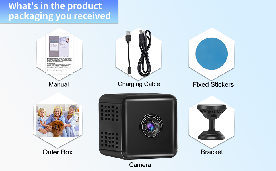 【1.4'' Tiny Size Mini Camera】Such 1.2in*1.2in*1.4in hidden cameras give the best value for space.Easy to hide but not easily to be detected and destroyed.Such kind of size enables this mini hidden camera to be concealed everywhere,such as drawer, sofa, bookshelf and closet.This mini cam also could be stuck to many places,such as walls,balcony and porch,with the bracket in package which could be rotate and adjust to many directions.