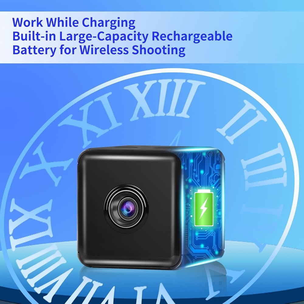 【8 Hours Battery Operated Security Camera】Equipped with a 1400 mAh rechargeable battery,ValleyGood security cameras could last for 8 hours in standby mode.Longer working time of this small security camera means much more time and energy free than hidden security camera of other brands do.Plugging an outlet into this mini security camera,it also could be a guardcam for 24/7,companying you and guarding your home security.