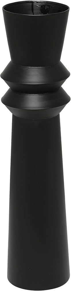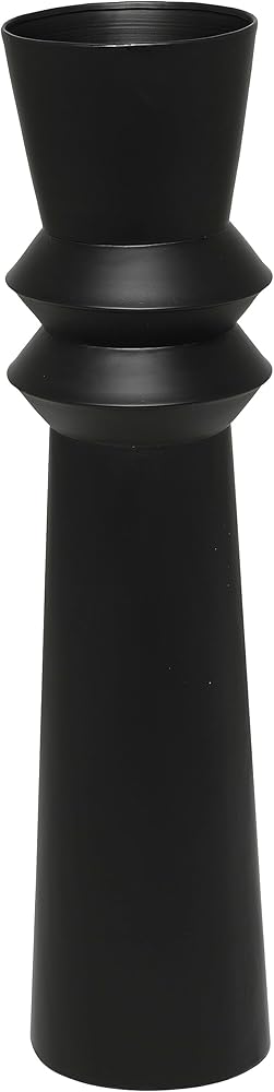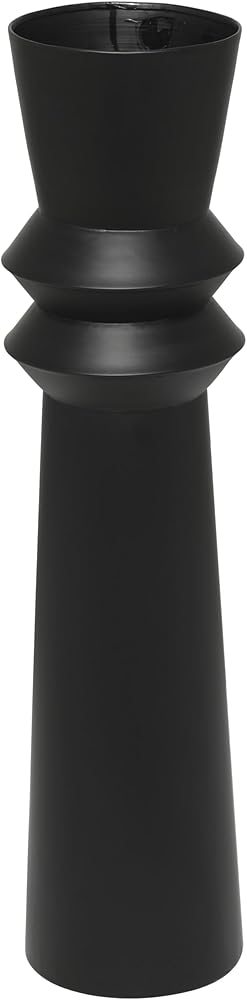 Accessorize your space effortlessly by displaying a beautiful floral arrangement or greenery with this decorative vase. Create a balanced surface space and added dimension with this beautifully crafted vase. The unique and bold design of this tall cone-shaped vase makes for a gorgeous display with long-stemmed floral, greenery, or dried branches. Designed with felt or rubber stoppers at the base that prevent scratching furniture and table tops, as well as sliding around. This item ships in 1 carton. Metal vase makes a great gift for any occasion. Suitable for indoor use only. This item ships fully assembled in one piece. Made in India. This is a single cream colored vase. Modern style. Vase has a 5 in mouth opening.