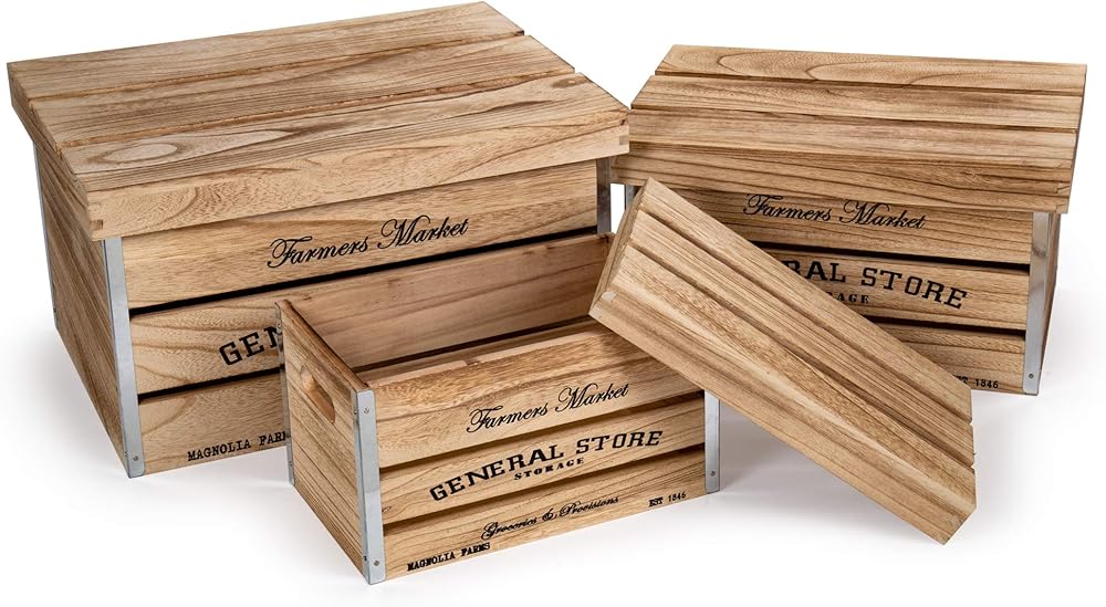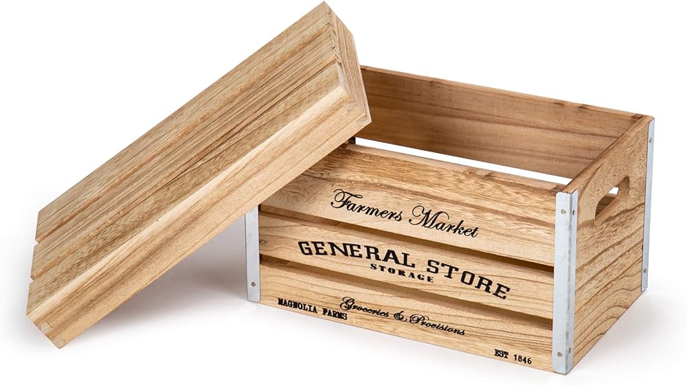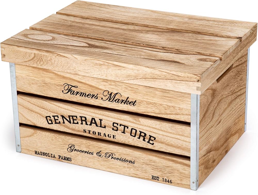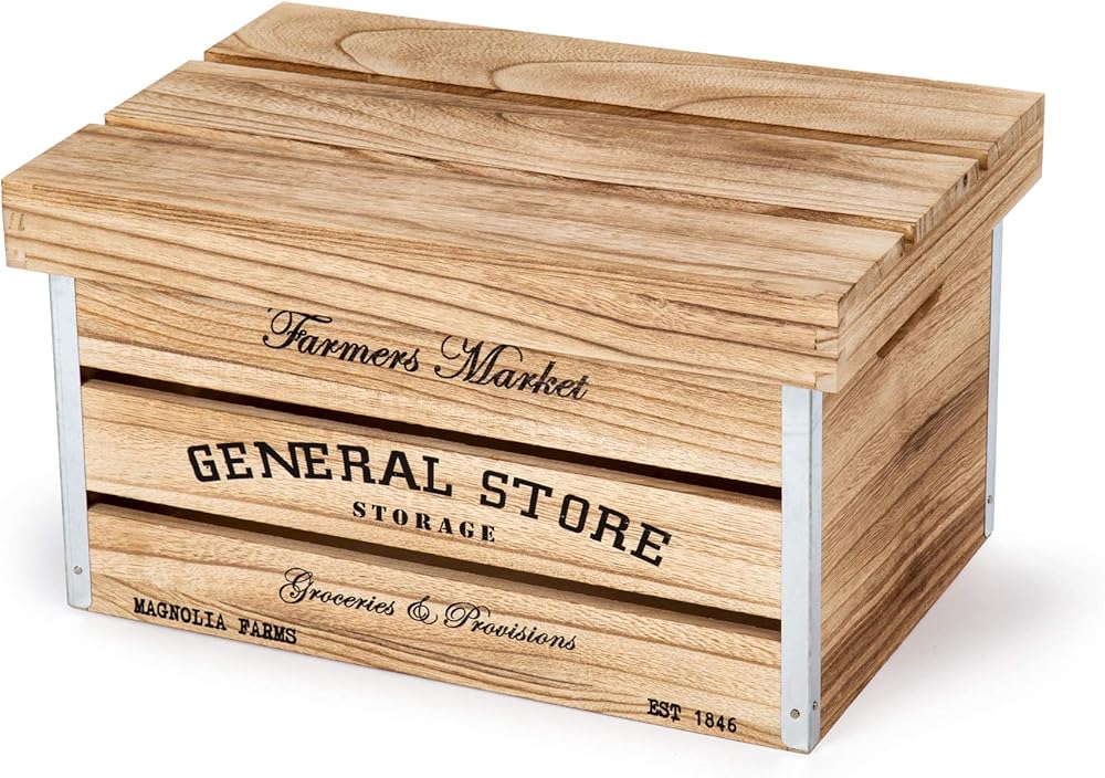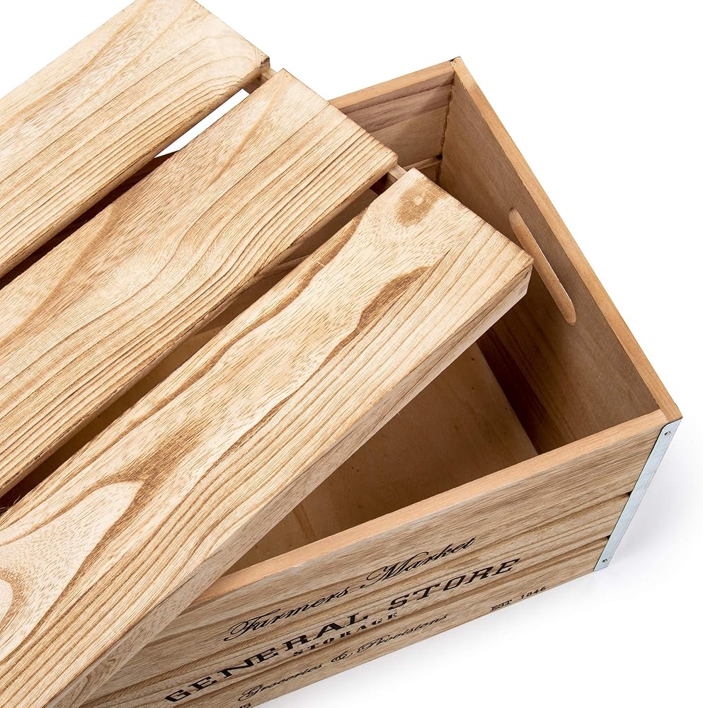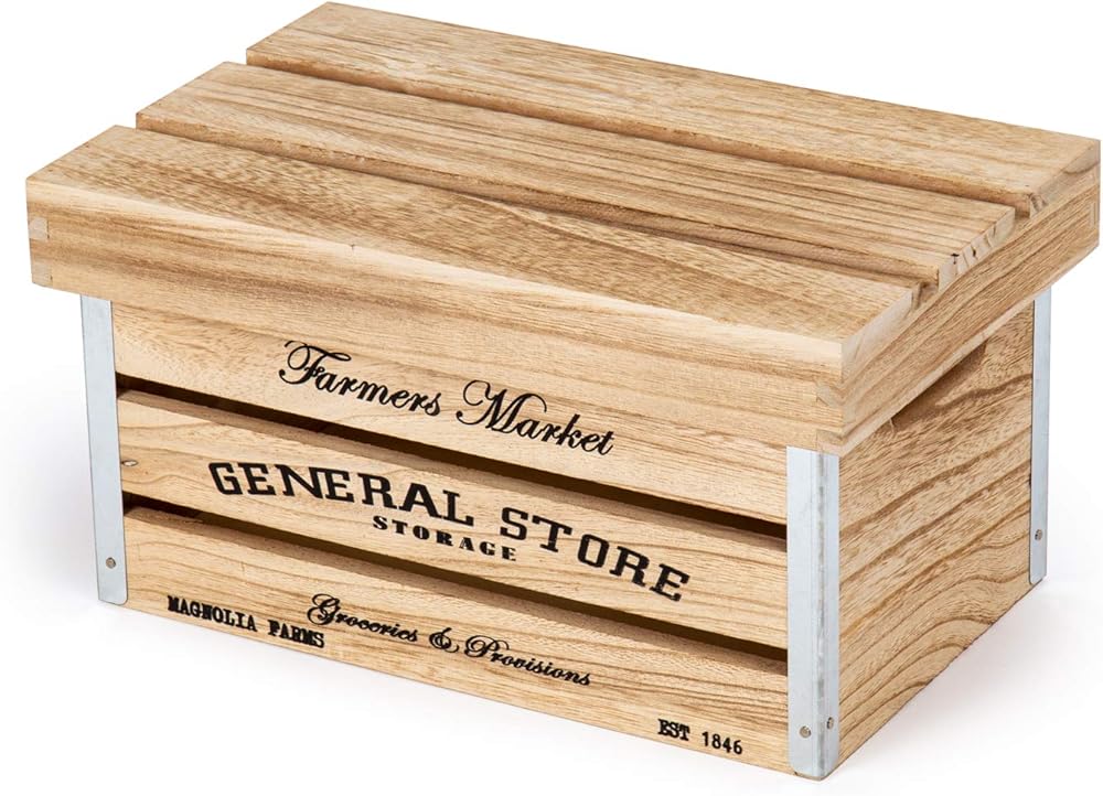 DESIGN: Designed in a farmhouse and rustic style and has a text that reads "Farmer's Market, General Store" to give a hint of a country-side feel to the storage crates