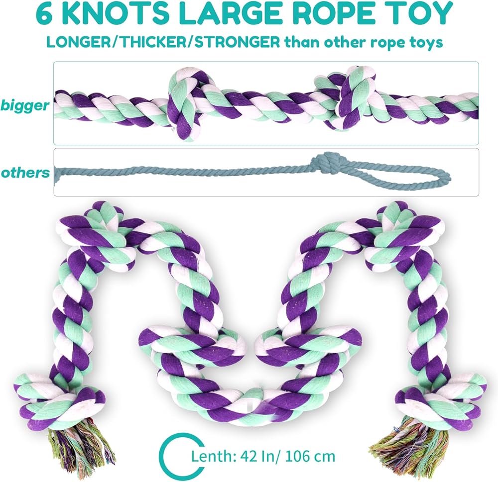 Dog Rope Toy 42In 6 Knots Indestructible Natural Cotton - Tough Chew Toys for Medium/Large Breeds Aggressive Chewers, Daily Companionship, Heavy Duty Tug of War Dog Pull Rope Teeth Cleaning