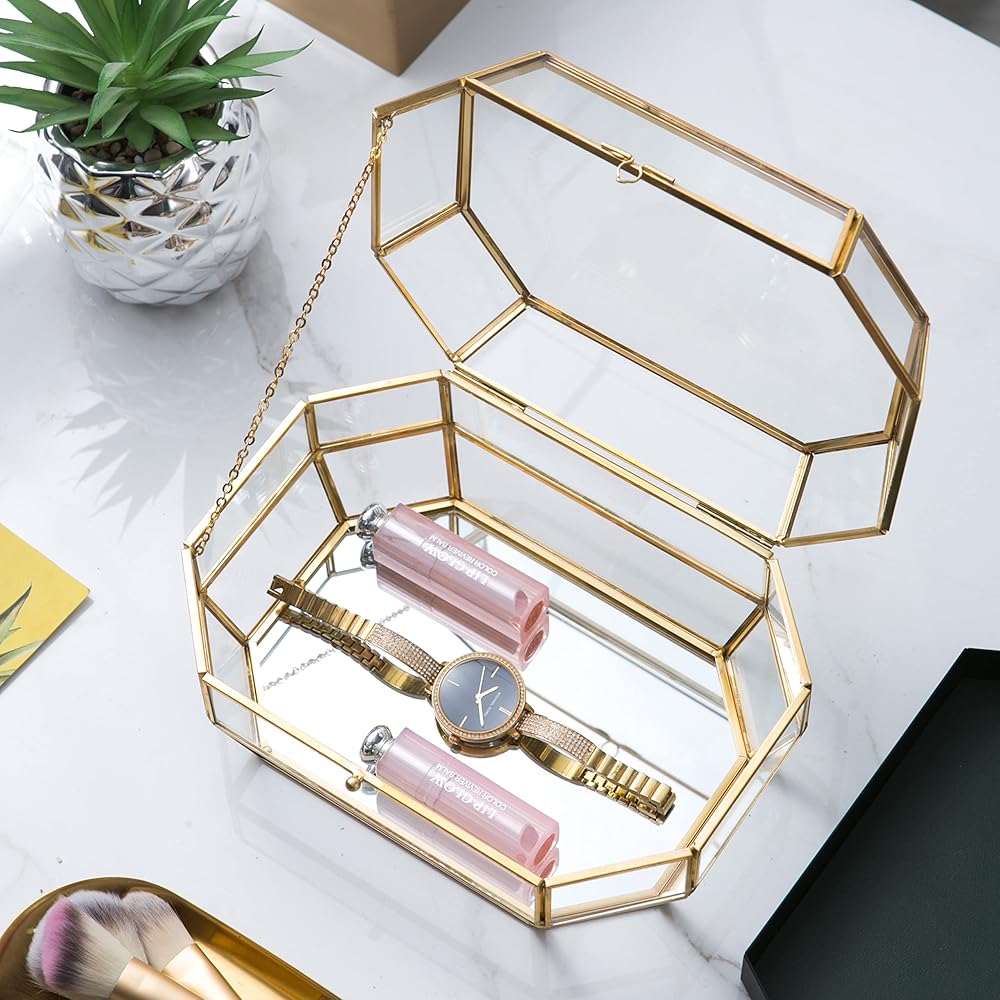 Premium Material - Made of premium metal and sleek glass. Durable and luxury. Multi-functional for jewelry, trinkets, keepsake and so on.