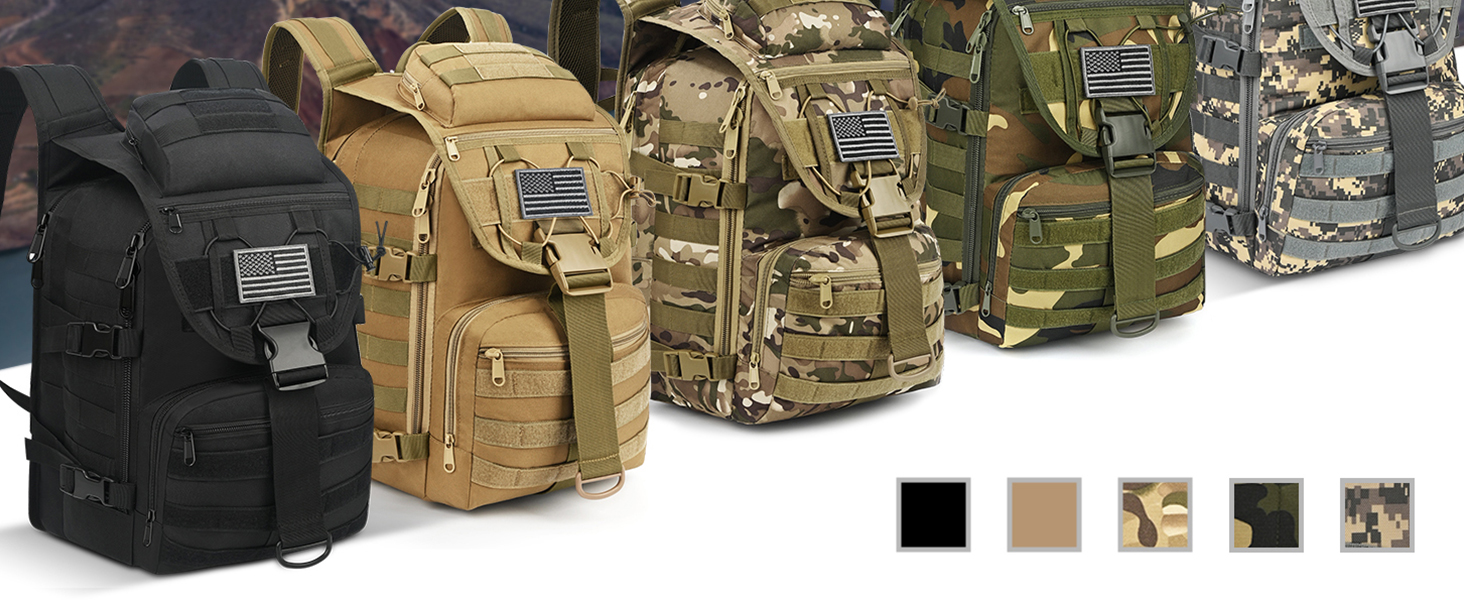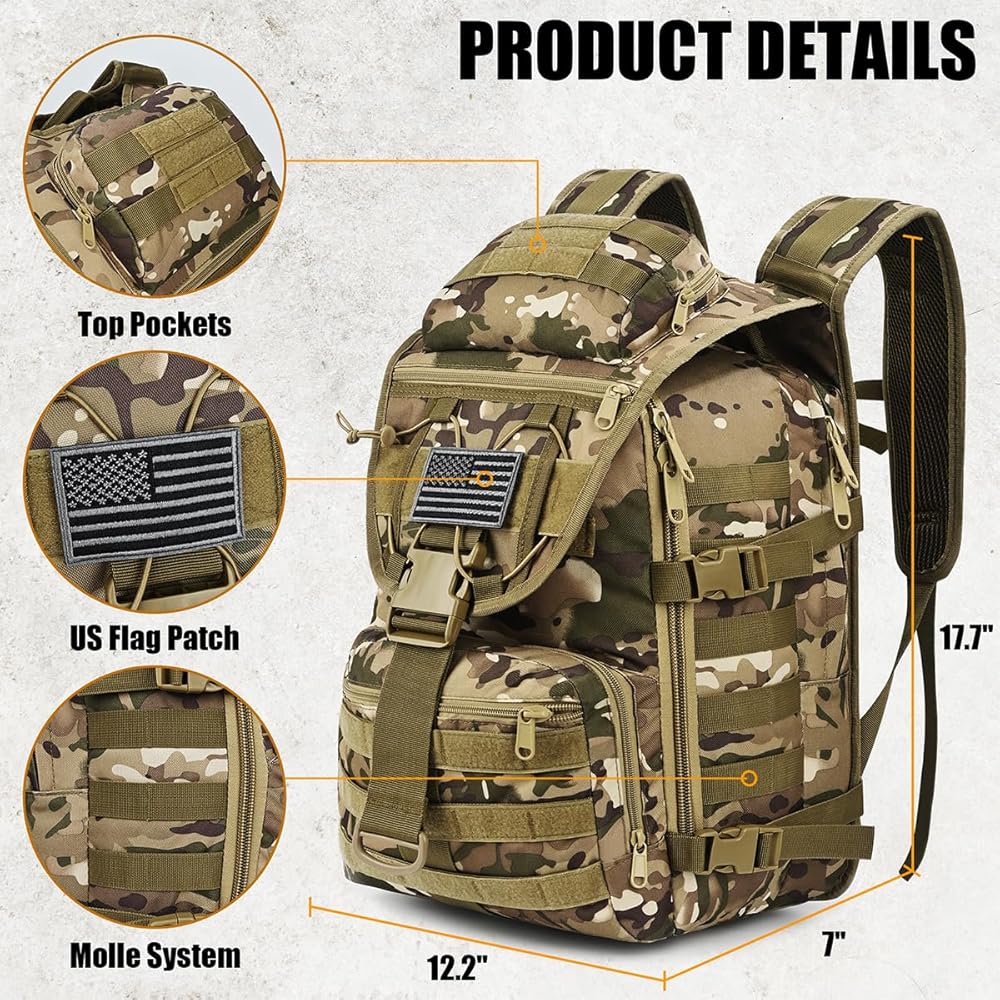 SIZE & CAPACITY: Size: 12.2'' * 7'' * 17.7'' (L* W * H). Capacity: 40L. The tactical backpack is made of high density 900D oxford cloth which is durable and waterproof.