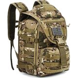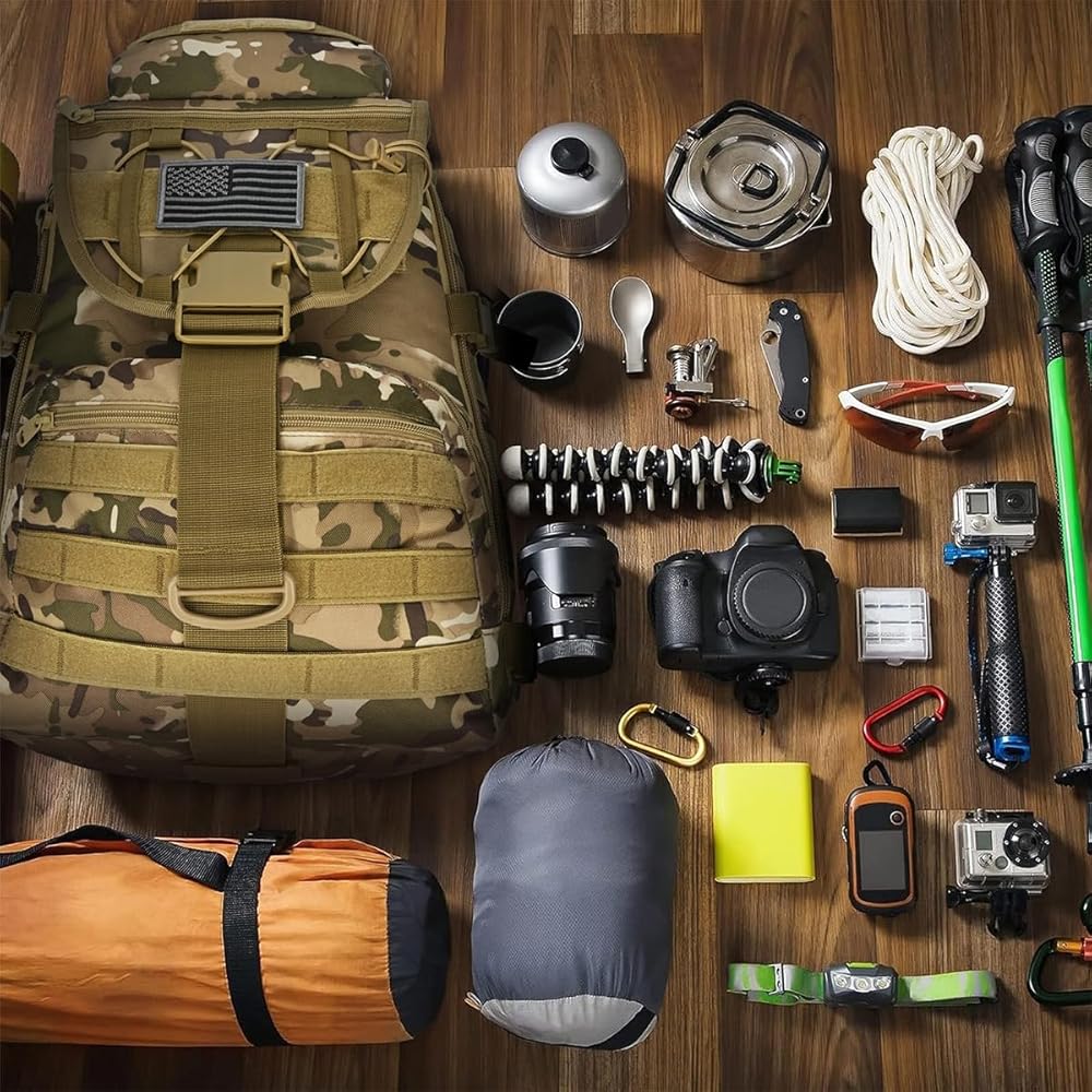 MOLLE DESIGN: The MOLLE webbing throughout the backpack is designed to carry EDC gadgets or all rang of survival backpack attachments for easy access, providing nearly 50% extra capacity. The bottom straps can be used to hold a tent or sleeping pad or other outdoor gear. Velcro strap to add any patch to make your backpack unique.