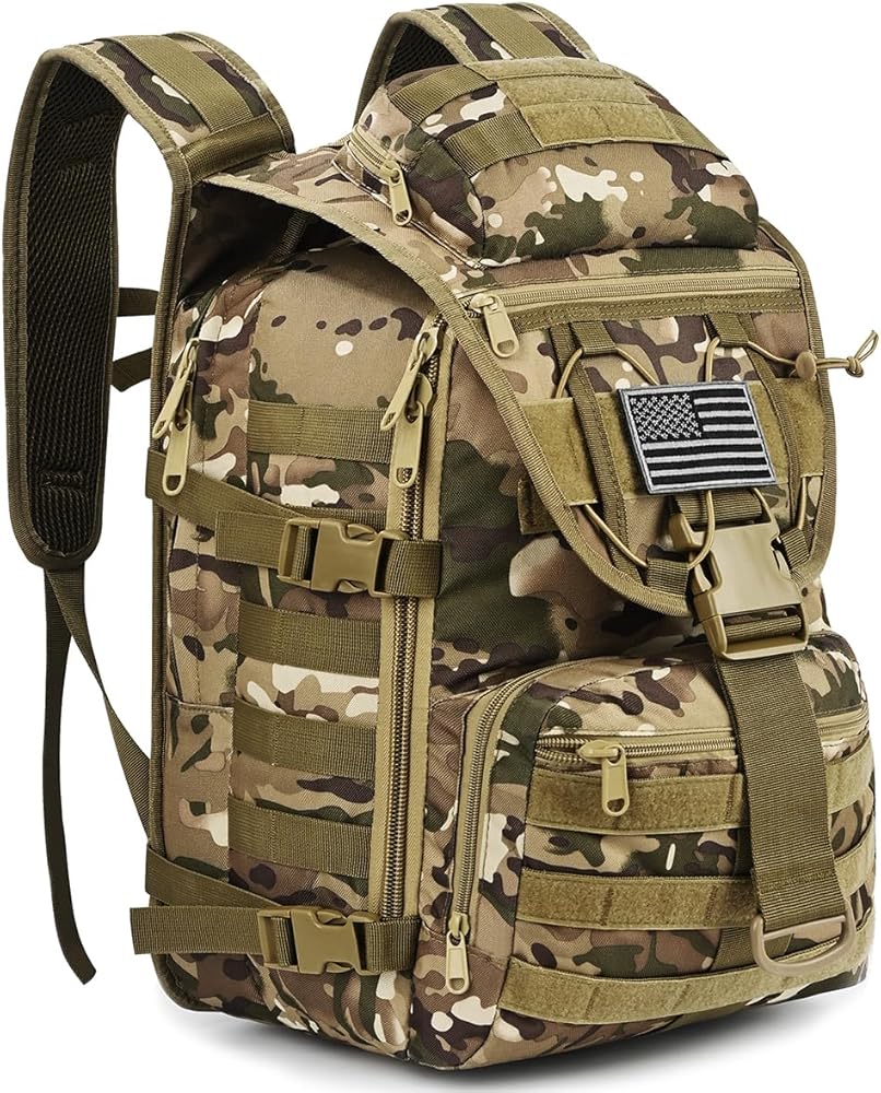 HEAVY DUTY ZIPPER: The military backpack with double stitches makes the heavy duty zipper last longer. All stress points are reinforced so that it can carry more items.