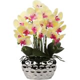 Versatile in Design & Decor --- The artificial orchids come with a silver ceramic pot, which is perfect in size and will fit great in your office, living room, kitchen, or bathroom. And it is also the ideal gift for a coworker who is starting a new job or for a friend's housewarming party.