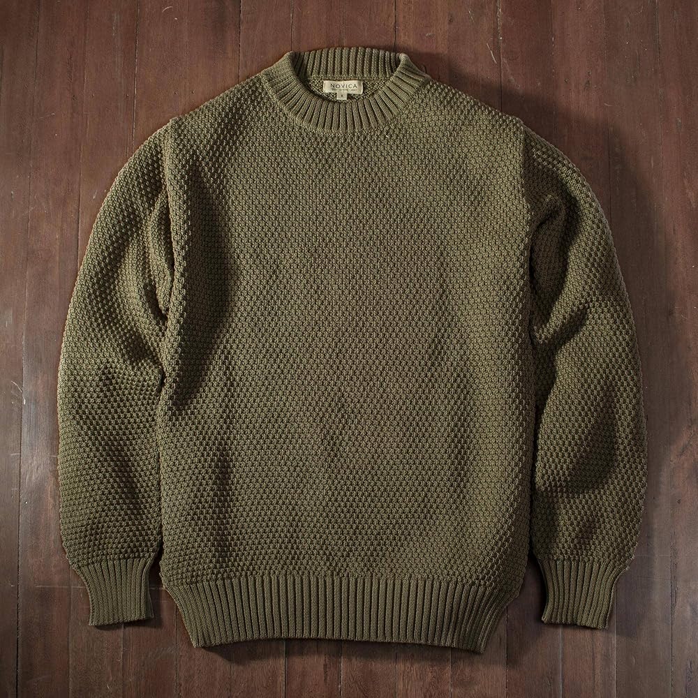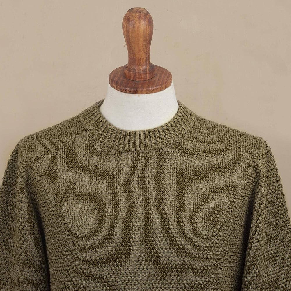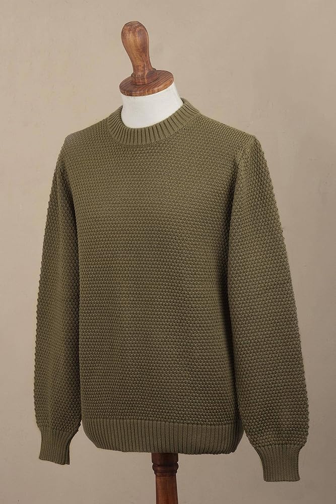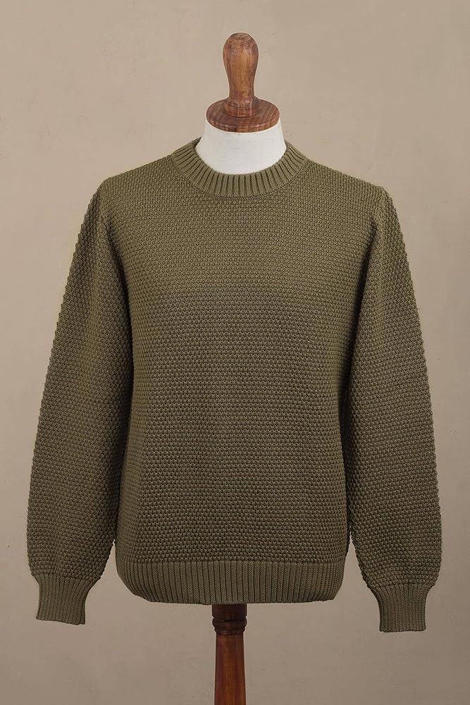 About this item: Designed by Peru's Zoila Olaechea, this gorgeous men's sweater is made from pima cotton in a solid olive green tone and features a crew neck. With a fit that is great for casual styling, this sweater will become your go-to item. You will love the natural texture and color....