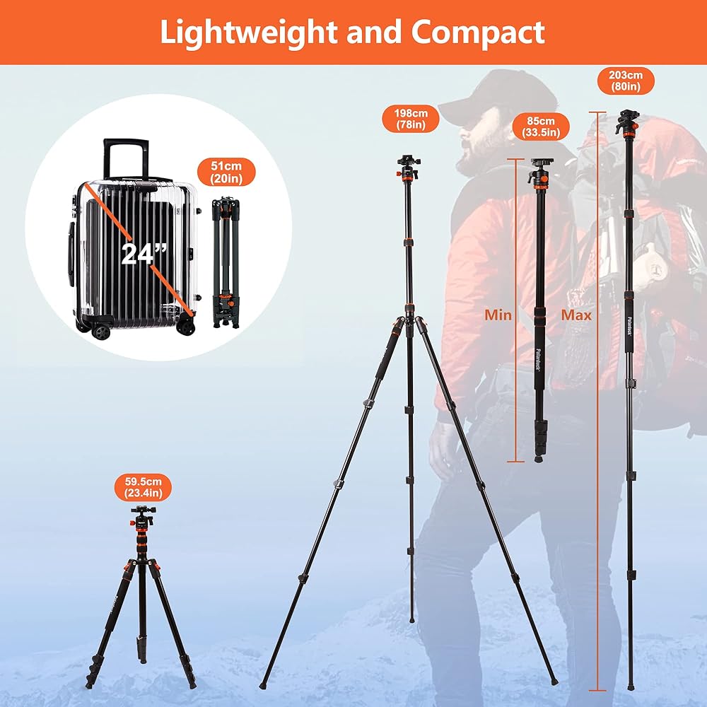 Polarduck 78 inch 198cm Camera Tripod for iPhone Phone Tripod Monopod Travel Tripod
