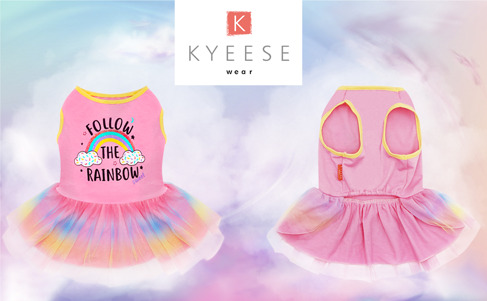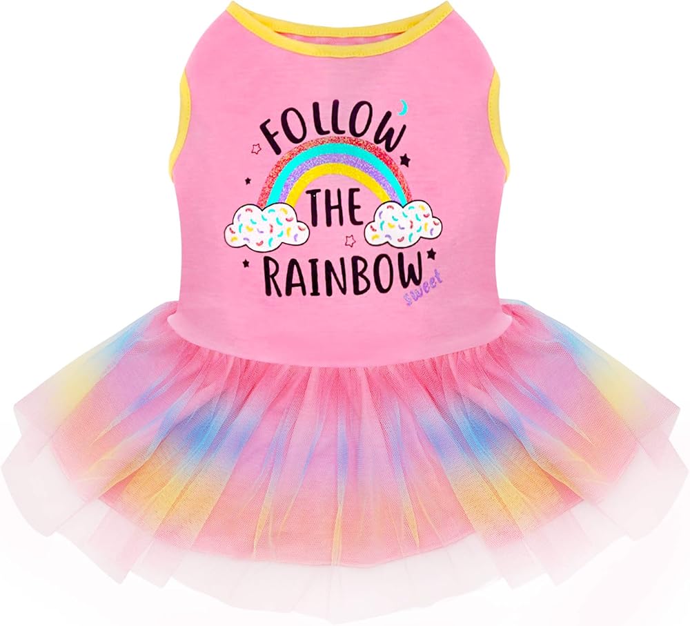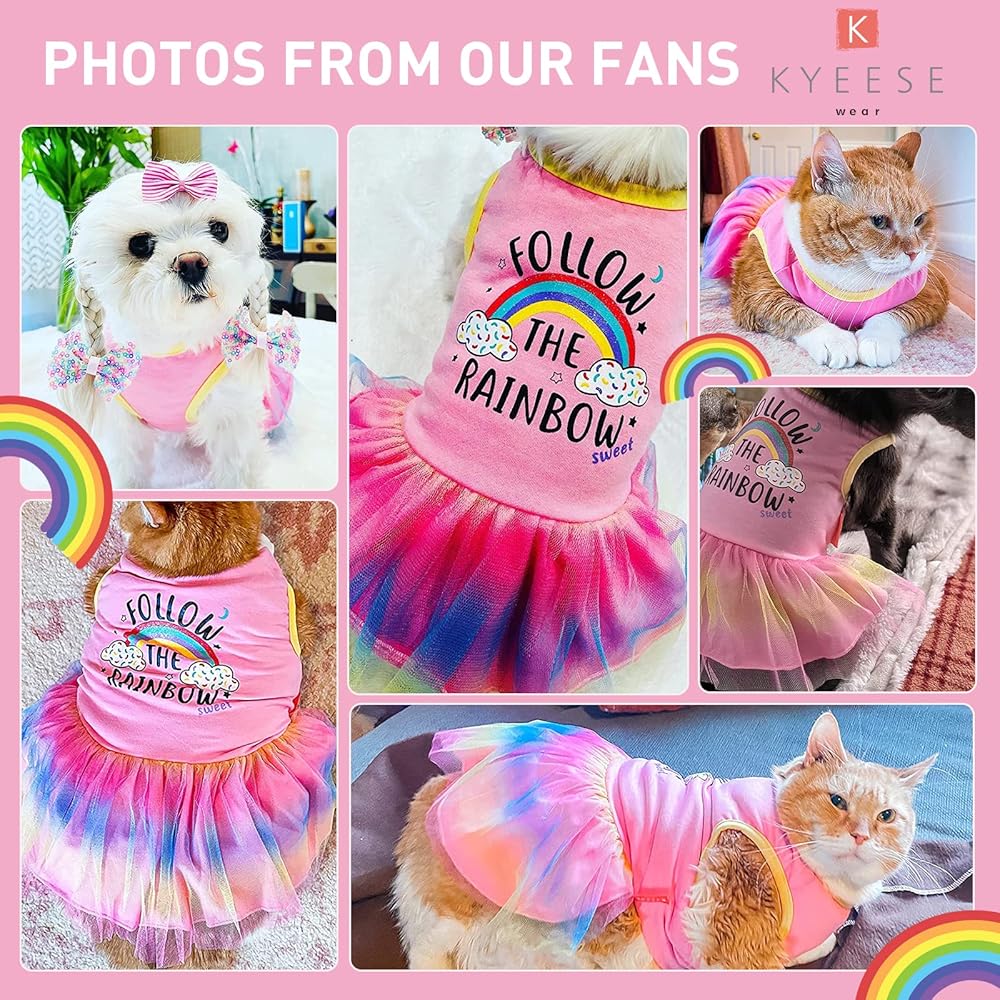 KYEESE Dog Dress Sunflower Dogs Sundress Tulle with Ruffle Sleeves Dog Apparel (Medium (Pack of 1), Rainbow(A))