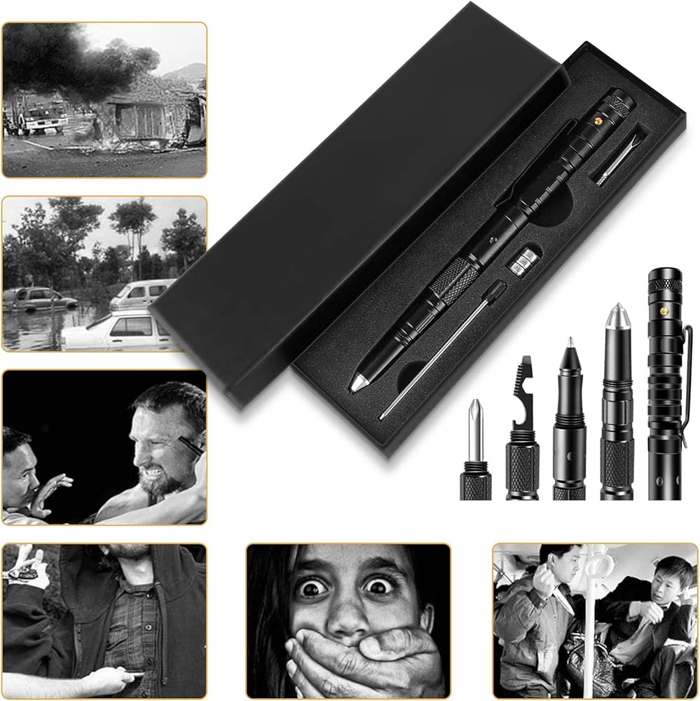 ❖The World's Most Multitool Pen❖Tsryrlr's tactical pen combines the most-needed EDC tools in one sturdy, well-designed tactical pen. It has advanced glass break point, flashlight, bottle opener, screwdriver, writing, wrench, home writing or Outdoor emergency record, and other daily needs.