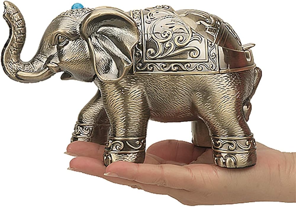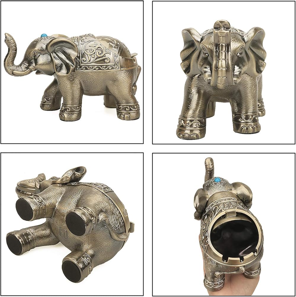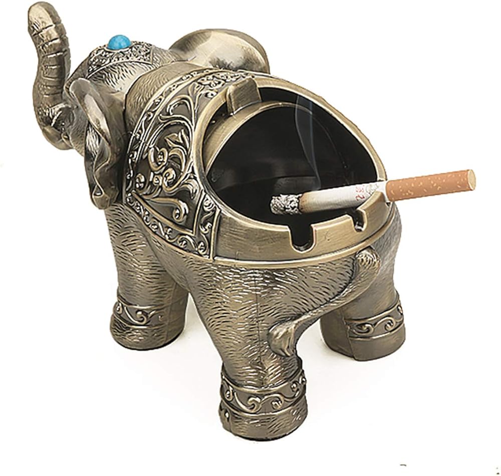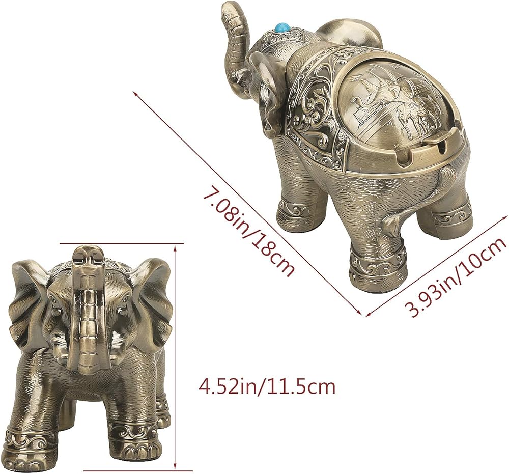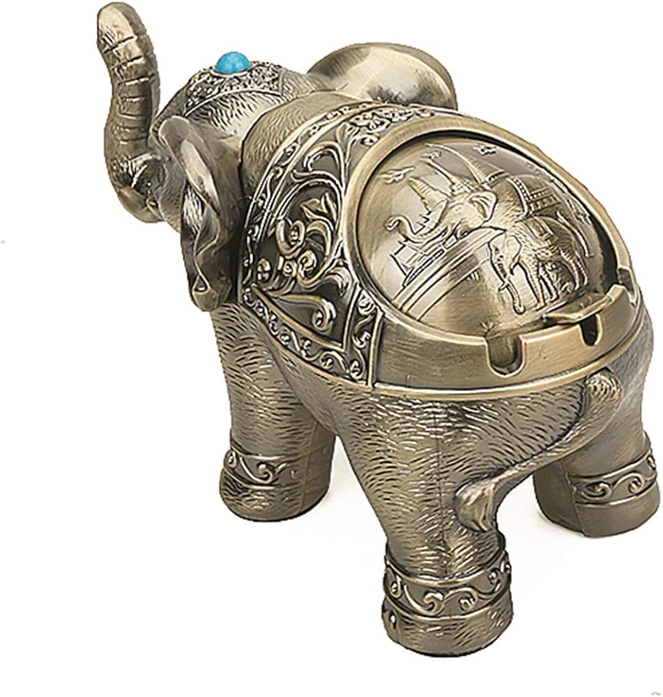 Decorative Elephant Ashtray with Lid for Cigarettes Vintage Metal Smoking Ash tray Holder for Smoker Desktop Windproof Cigarette Ashtrays for Indoors Outdoors Nice Gift for Men Women (Bronze)