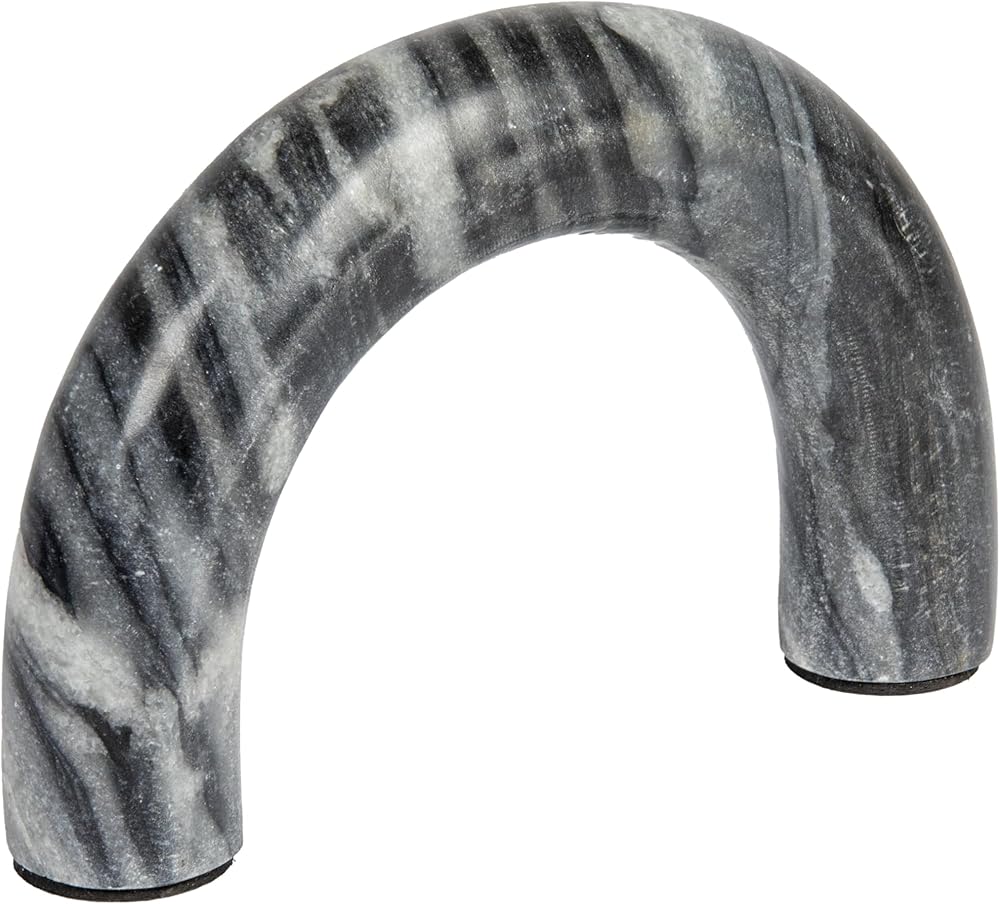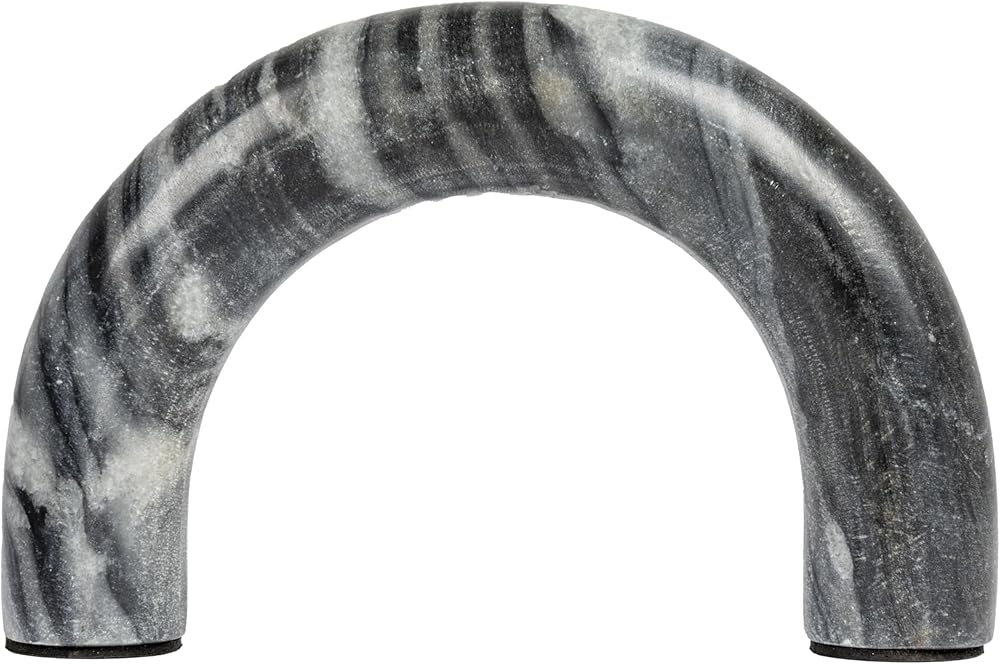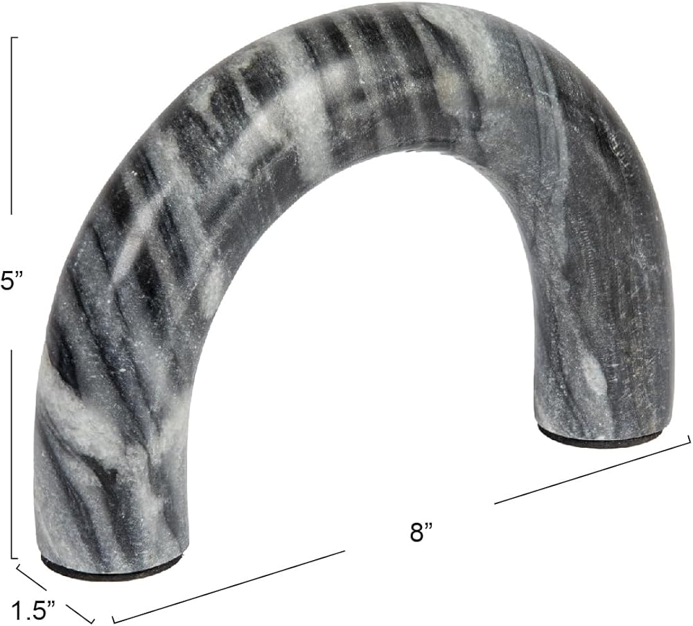 This beautiful marble accent seamlessly combines natural beauty with modern design. With its versatile arched silhouette, this piece is a perfect addition to any living space whether placed on a mantel, console table, shelf, or dresser. This stunning accent is crafted from 100% natural marble, ensuring its timeless beauty and durability. Please note that each arch is meticulously crafted using naturally variating marble, making every piece a one-of-a-kind masterpiece with its own unique color and grain. Measuring 8 inches L x 5 inches H, with a diameter of 1.5 inches, this tabletop shelf decor is the perfect size for a variety of uses. Whether you're looking to display it as a standalone piece or use it to showcase other decorative items, it is sure to draw the eye and elevate any interior design scheme.