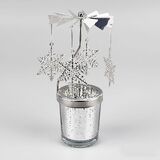 🙂 When the candles are lit, wait for a short while and the metal windmills will spin. Snowflake will all start to spin and dance!