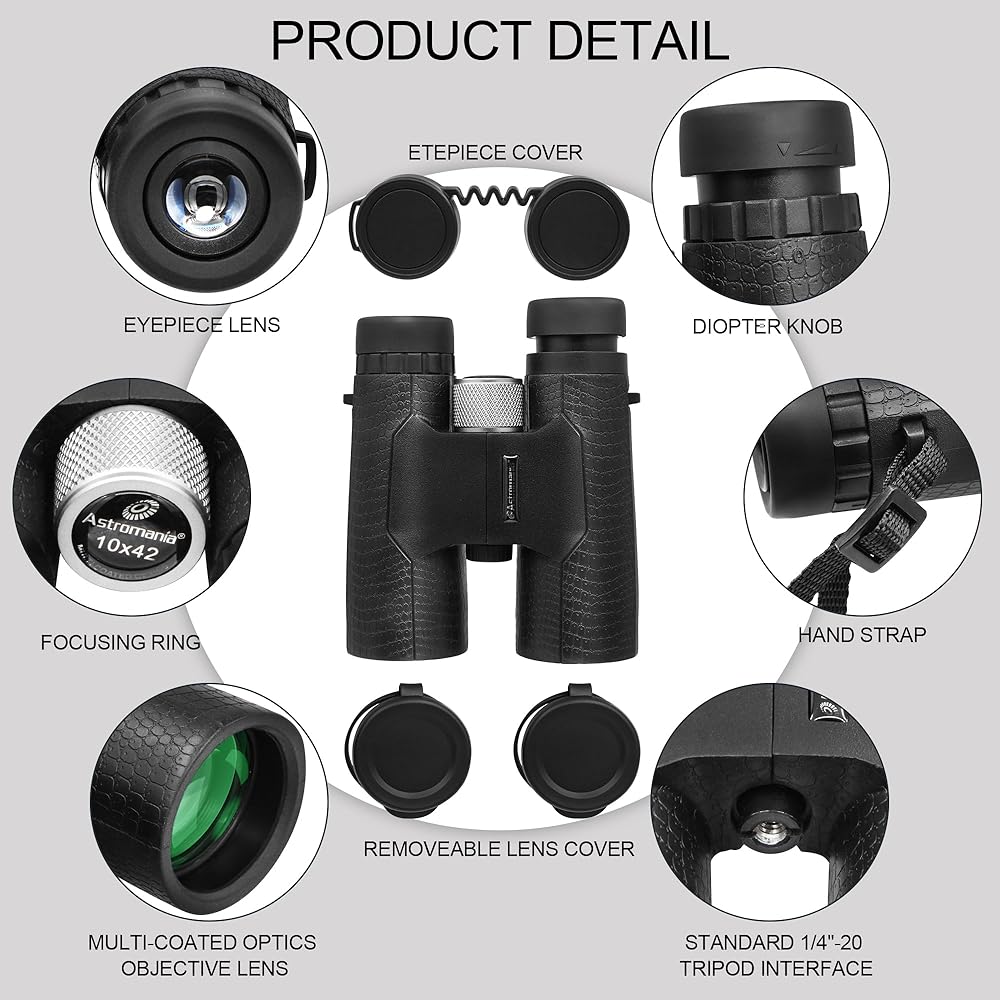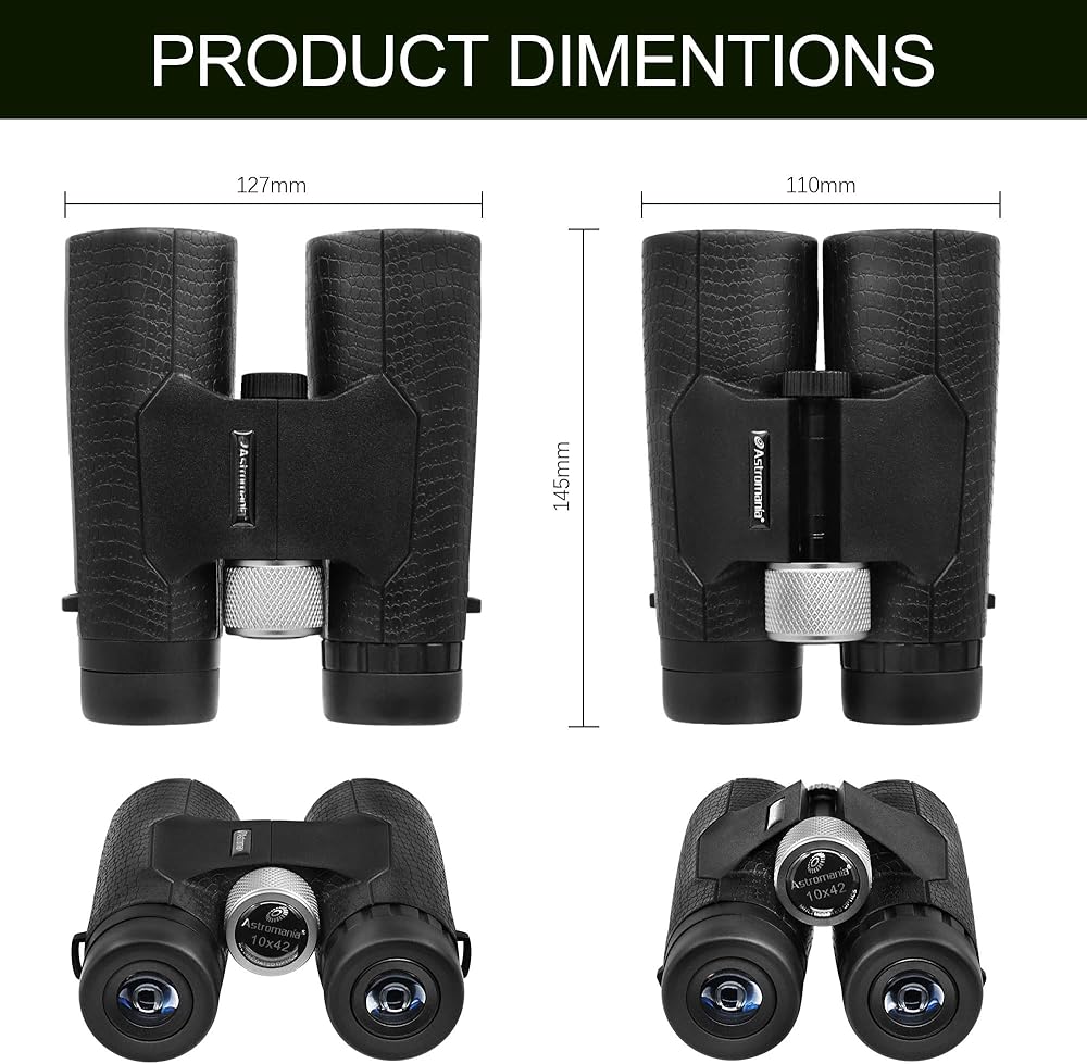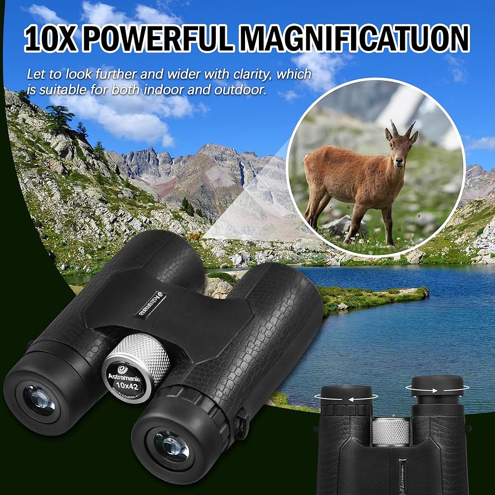 【HIGH-POWERED LARGE EYEPIECE BINOCULARS】 This binoculars has 10x magnification, 42mm objective lens and wide field of view, 288ft/1000yds, letting you look farther and see wider. Coating with premium BAK7 prism, it ensure imaging verisimilar.