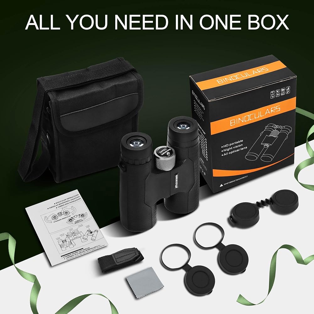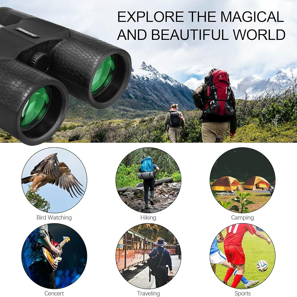 【PORTABLE, COMPACT BINOCULARS DESIGN】 One hand can be mastered when you use the birding binoculars for opera,bird watching camping, traveling,wildlife watching,football games,cruise or other outside activity.