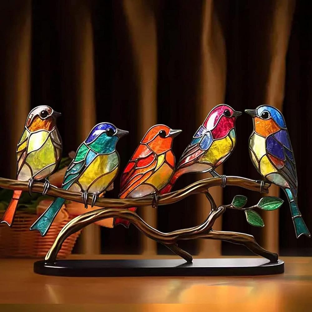 DUOAMARE Stained Glass Birds On Branch Bird Decor Ornaments Desktop Decor Double Sided Multicolor Style Birds for Home and Office Desk Decorations, Housewarming Birthday Gift