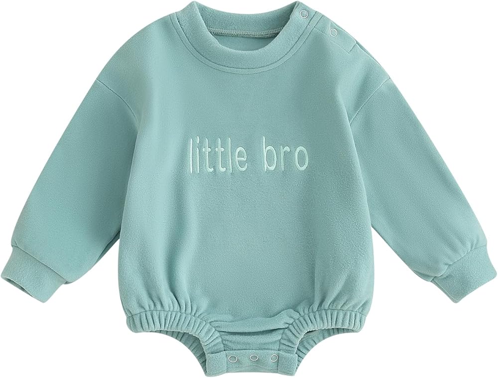 • DESIGN: Gender neutral baby sweatshirt romper, cute baby boy girl clothes, long sleeve, crewneck sweatshirt romper, ''little dude'', ''little bro'', ''little boo'', ''little sis'', ''little love'' letter embroidered pullover tops, snap closure, bubble romper for baby boys girls, fall winter thick sweater clothes, Make Your Little Baby Warm and Lovely.
