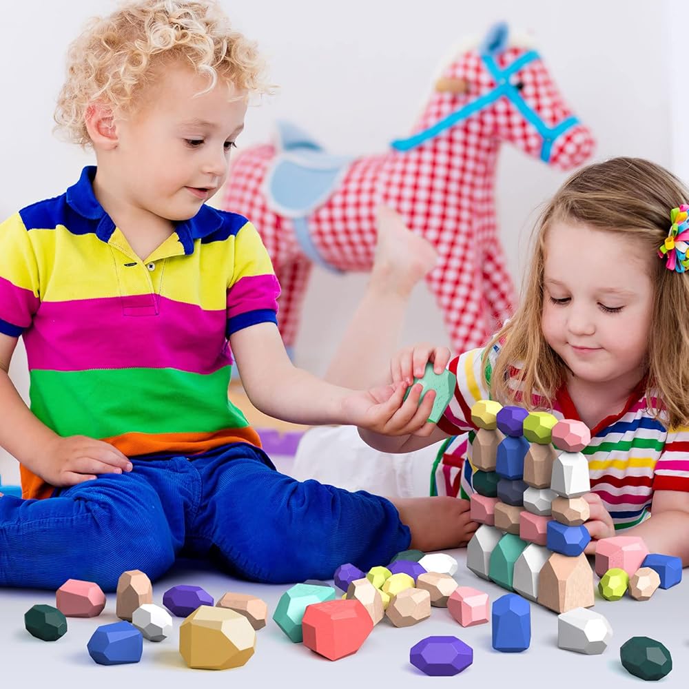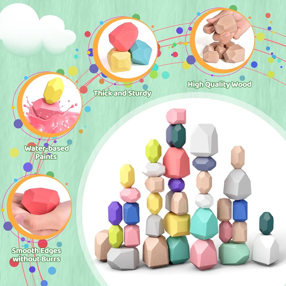 FUN LITTLE TOYS 40PCS Wooden Stacking Rocks for Toddlers 1-3,Building Blocks Set Balance Stones,Montessori Toys Sorting Stacking Toys Preschool Educational Learning Toy for Kids Age 3 4 5 6 7