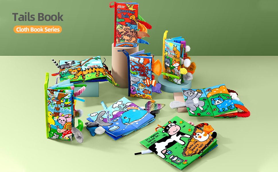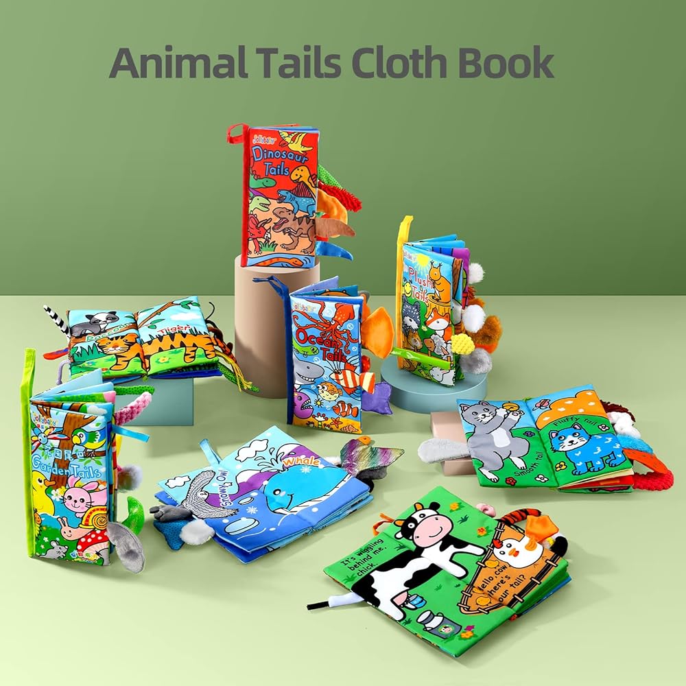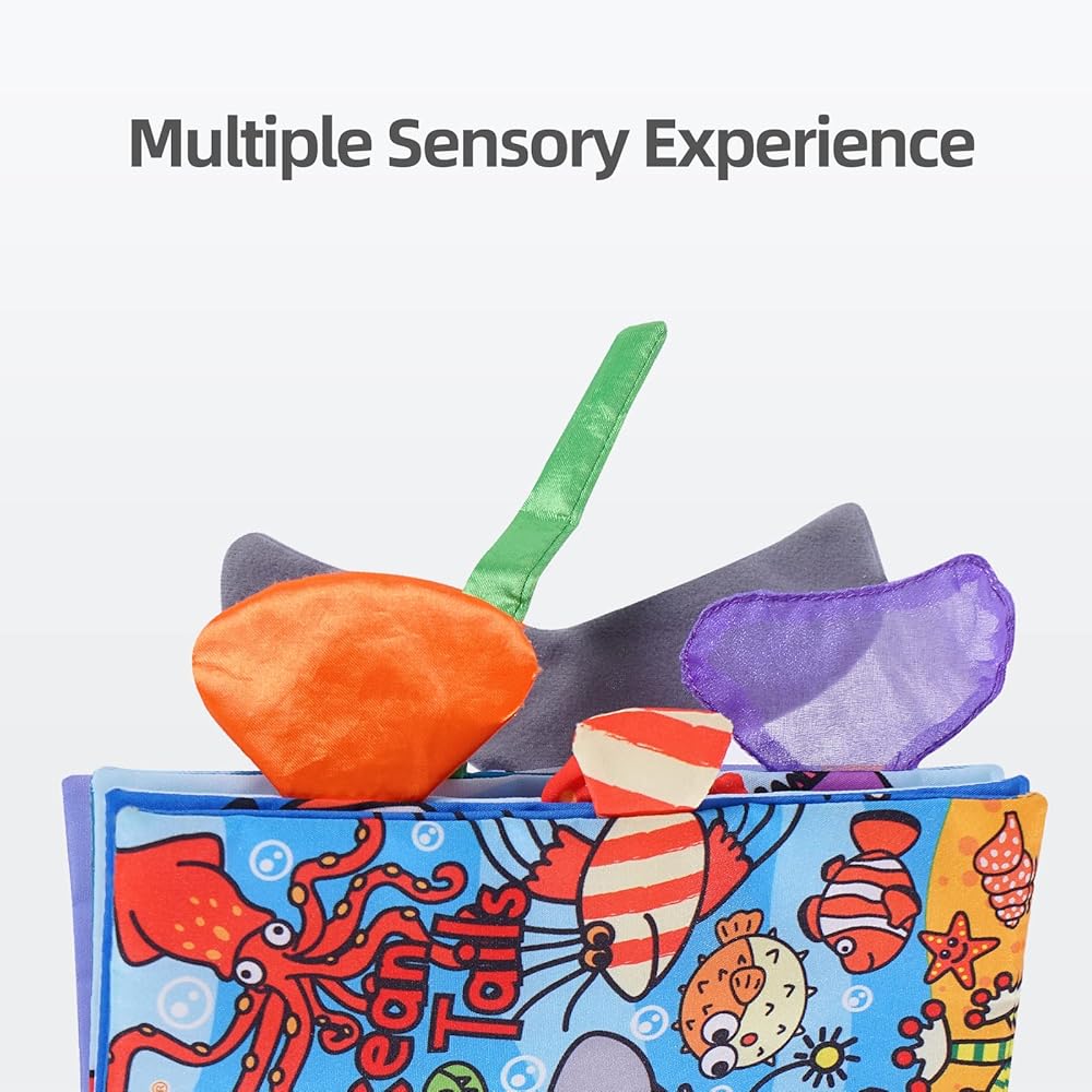 Jollybaby Soft Baby Cloth Books, Crinkle Tail Book, Sensory Teething Books for Babies, Infants & Toddler, Early Children Development Interactive Baby Girl & Boy Toys Gift(Ocean)