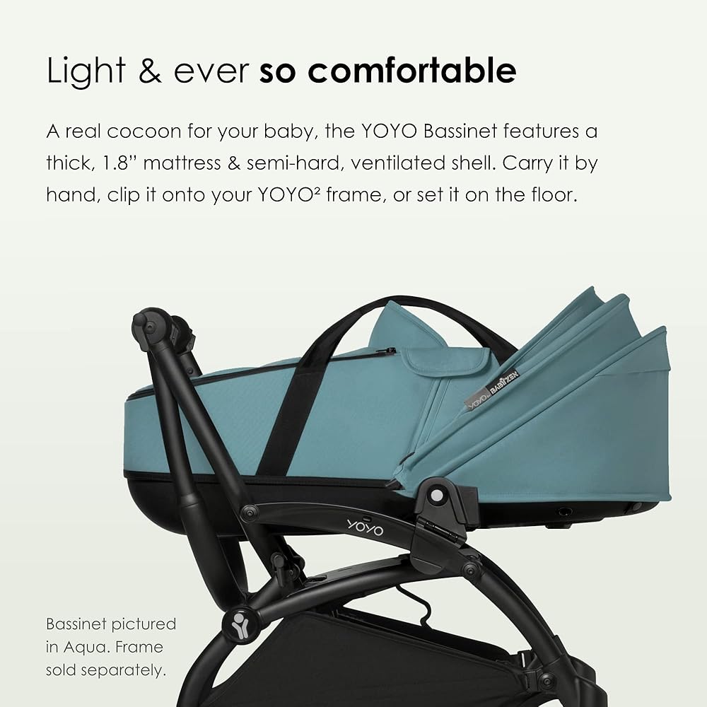 PARENT FRIENDLY - The YOYO Bassinet can be carried by hand, set on the floor, or clipped onto the frame, so you're always maneuverable & flexible. The ultra-lightweight shell disassembles into two half shells for compact storage.