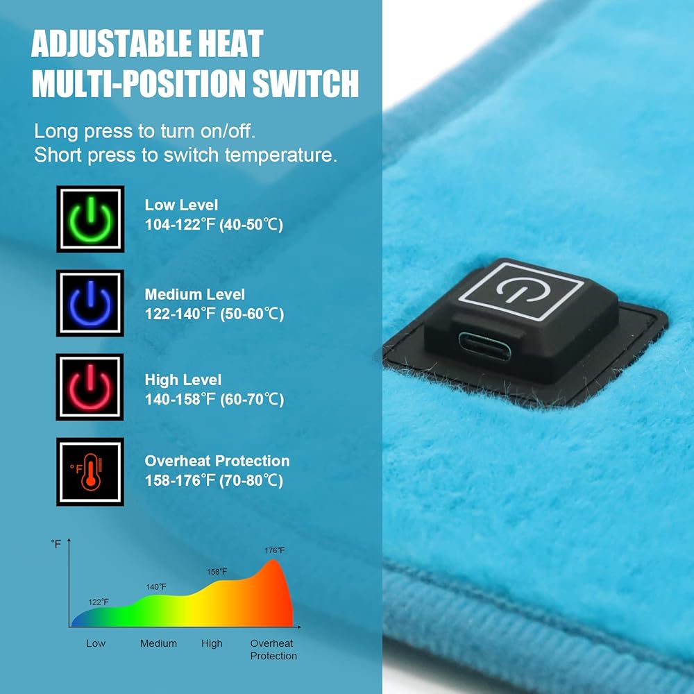 USB POWERED AND PORTABLE: Unlike most heating pads, which draw power from an AC outlet and can only be used near an electrical socket, our heating pad is powered by 5V/2A power supply, such as a power bank, computer host, or AC adapter (2A, preferred), which allows you to use the heating pad anywhere you like.