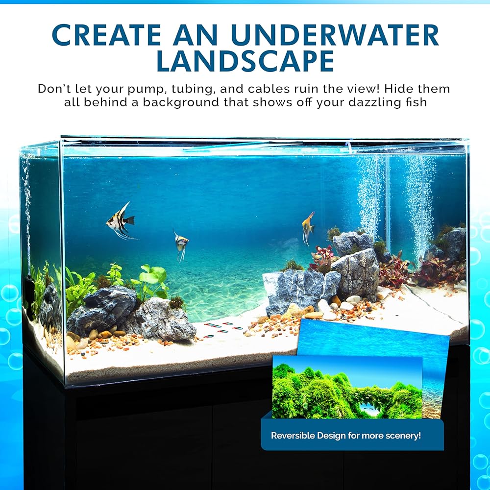 PREMIUM QUALITY: 720 DPI Printing. Double sided with 2 High definition aquarium background images to choose from. Bring your aquarium habitat to life with this beautiful underwater background picture. Complete your undersea theme with a new background to frame your favorite fish tank decoration.