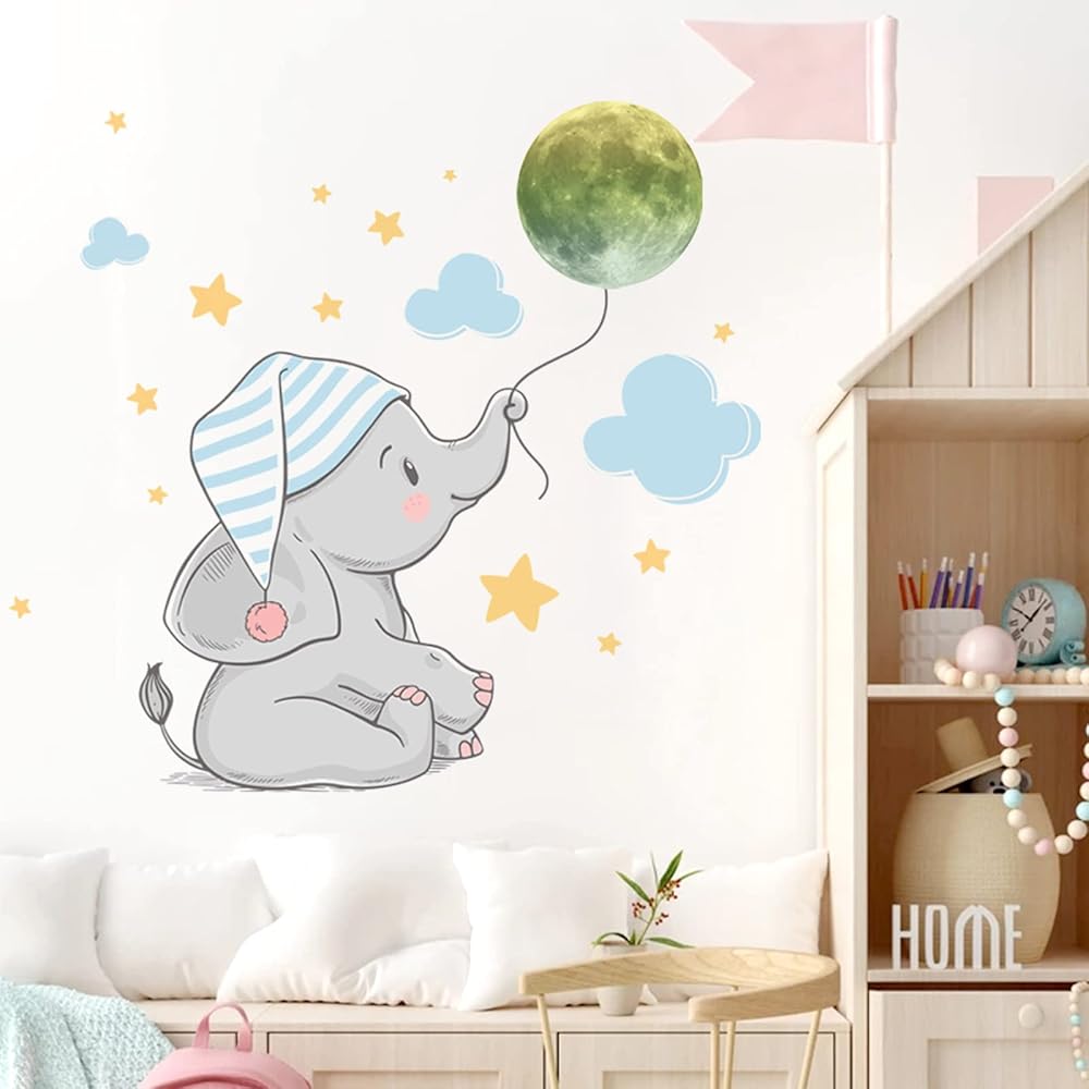 【Warm Elephant for Home Decoration】Everyone's favorite friendly elephant, the baby elephant follows mother design can not only light up your room, but also encourage imagination, creating a warm atmosphere. With the quote we love you to the moon and back to make it more moving. Wish your kids happy when they received this lovely elephant wall stickers.