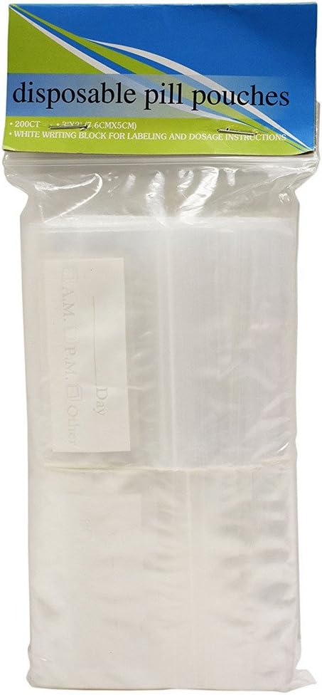 Set of 200 Disposable Plastic Pill Bags 3" x 2" with White Writing Block Area for Easy Labeling