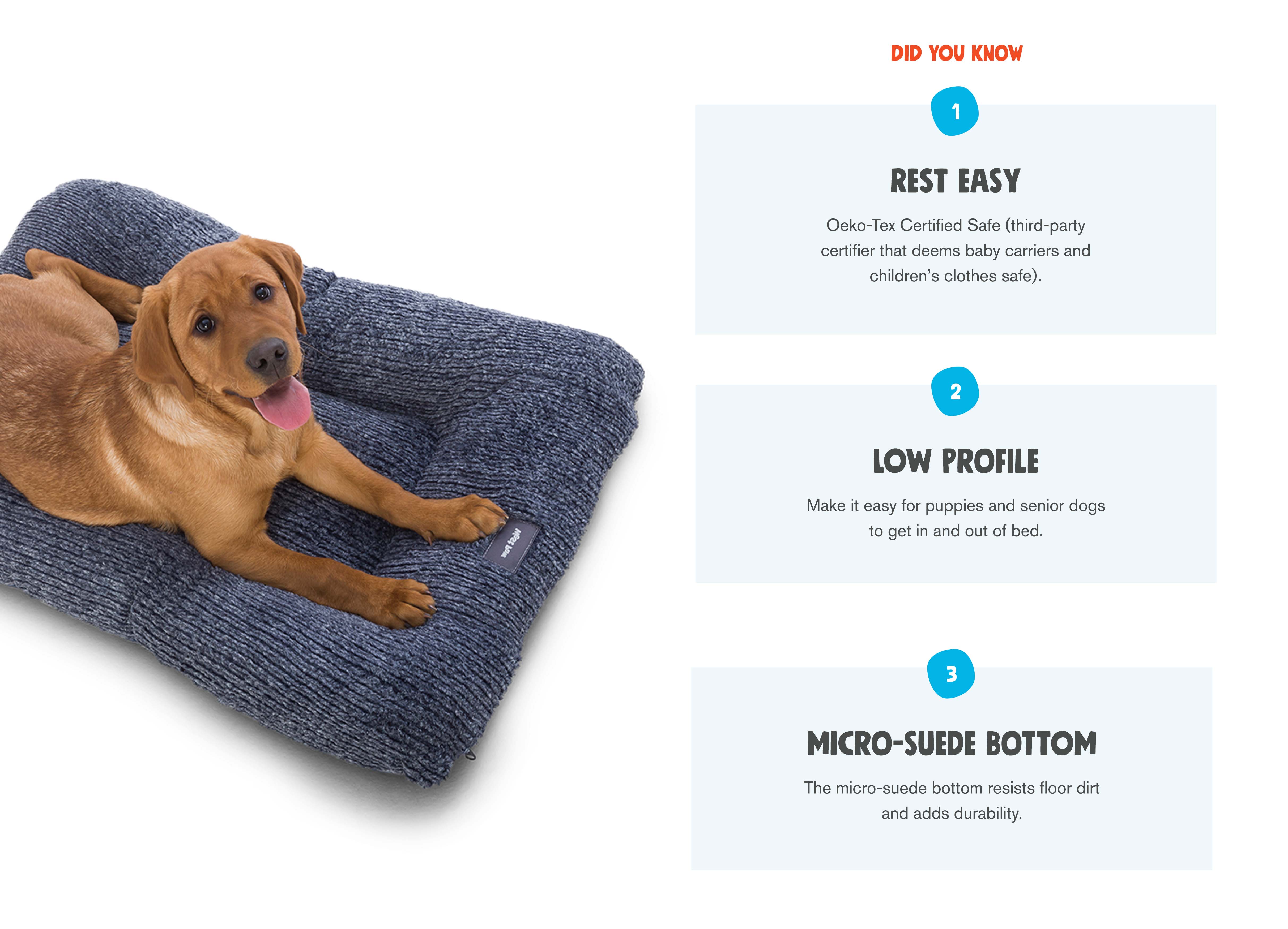 PORTABLE, DURABLE ANIMAL BEDS: Keep your pup's sleeping sofa on hand with this handcrafted and machine-washable microsuede dog bed that is portable and eco-friendly.