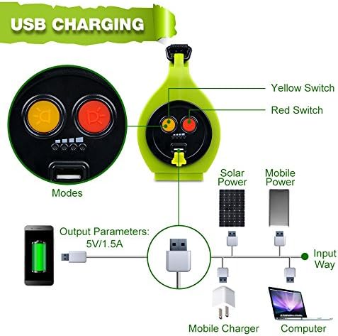 【Power Indicator】:4 blue LEDs indicate you the battery level. You can recharge the lantern timely when only show one LED indicating