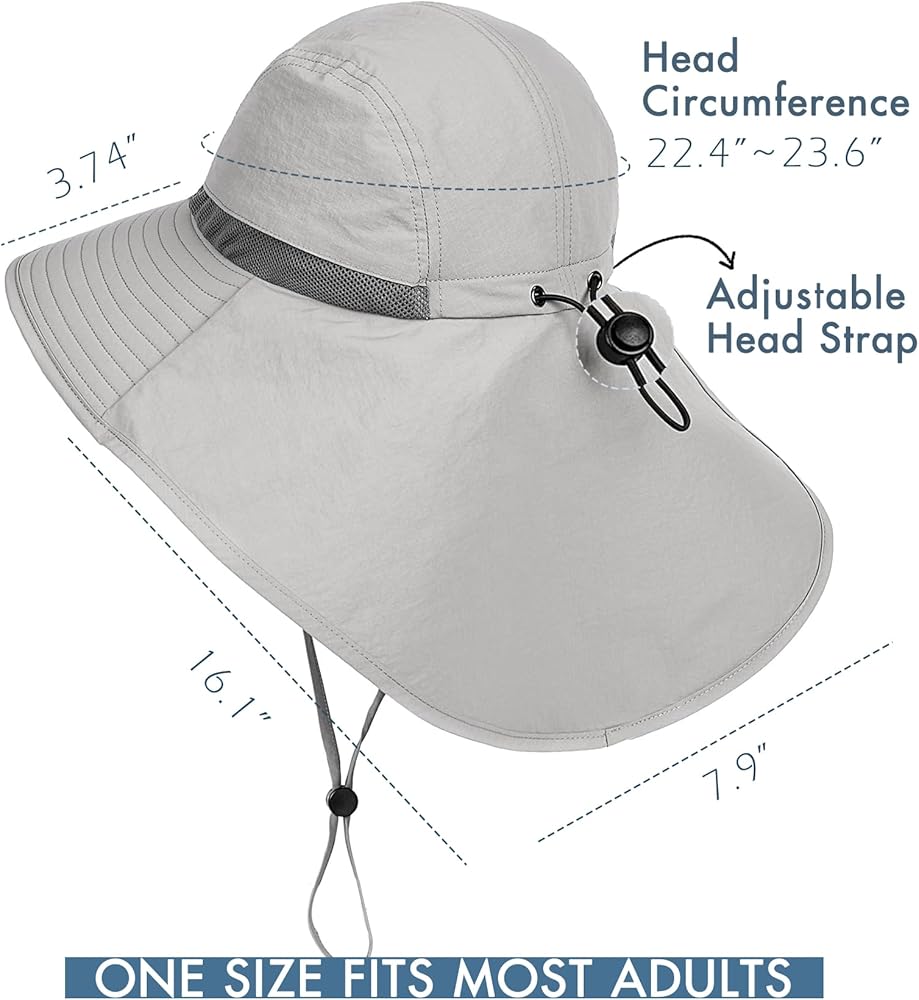 Adjustable Head Circumference: Fit for head size 22.4 - 23.6"; Elastic drawcord with toggle as size adjuster, the sun hat can fit most adults; Several colors, unisex, for both men and women
