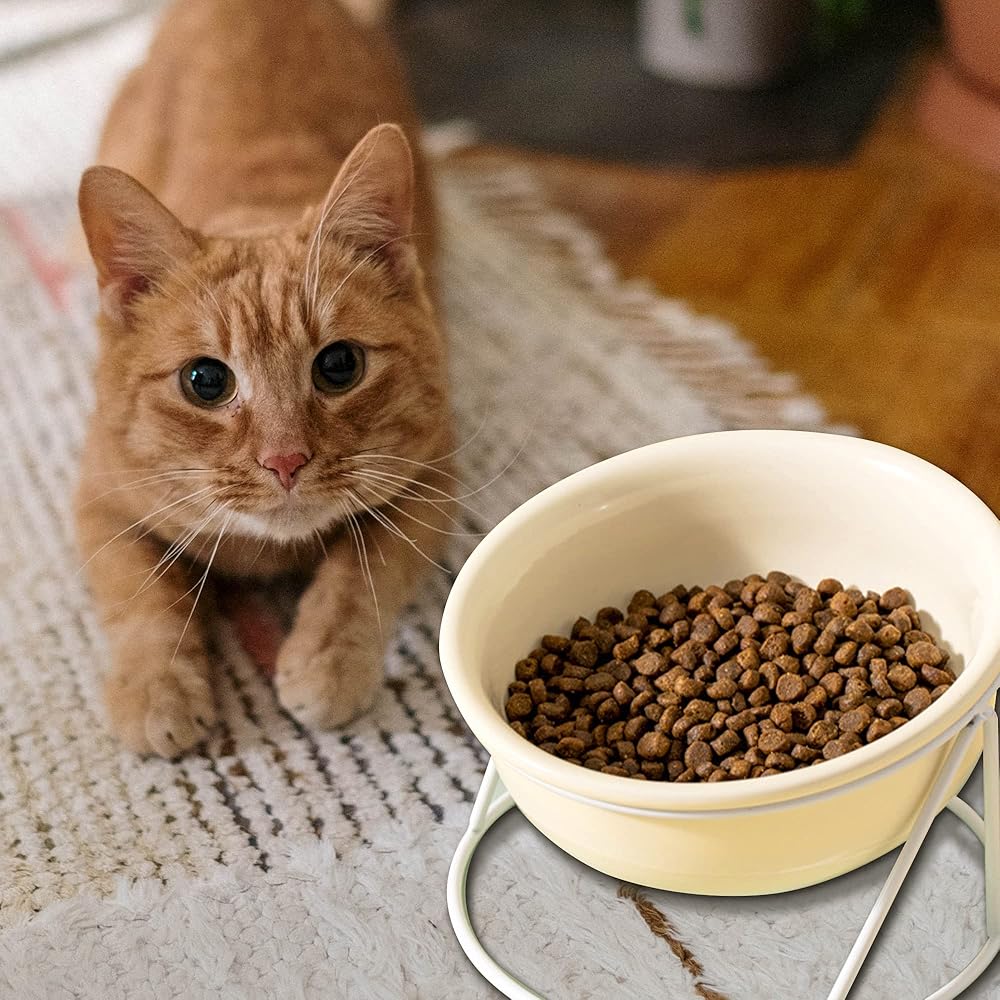 Stable Support: Cat food bowl is equipped with a stable support frame to prevent the bowl from being tipped over by pets. Removable for cleaning.