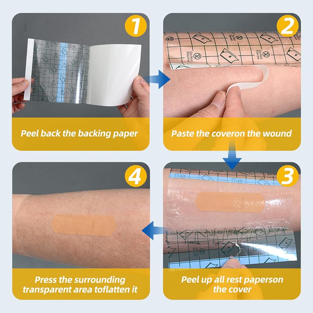 [ Wide applications ] : The transparent film is suitable for sealing bandages, preventing your skin from external friction and water to better grow an intact skin. As a good barrier to protect sensitive skin, the transparent stretch adhesive bandage can also protect the skin from further friction and scrubbing.