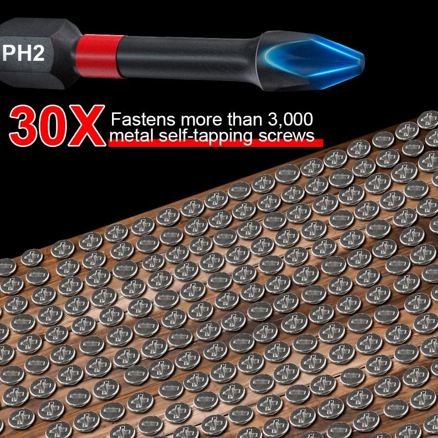 Extended phillips bits #2 impact magnetic features a torsion zone, absorbing torque and providing up to longer life.Magnetic phillips bit made from proprietary steel and heat treated to control hardness, no 2 phillips bits feature an innovatively designed geometric shock absorption zone to extend life. The extended phillips head drill bits allows for a secure grip and maximum contact eliminating stripping or slipping. Broadly targeting cordless users, 1/4-inch hex shanks increases holding power and allows for quick change.So magnetic phillips bits #2 impact is not only ideal for heavy duty impact applications, but philips head drive bits delivers a full system solution for all the user's drilling and fastening needs. The phillips head bits includes 18pcs long magnetic 2 phillips bit