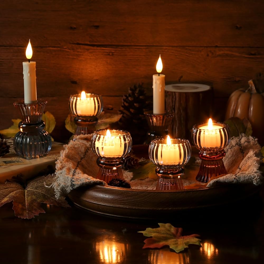 【Enhance Your Space and Share the Love】: GiveU tealight and taper glass candle holders are a perfect addition to your Fall and seasonal decor. The amber blue-colored votive candle holders naturally inspire feelings of togetherness, joy, and a cozy atmosphere. Gifting these creative Fall-themed amber blue candle holders is a wonderful way to express your sentiments to your loved ones on special occasions like Halloween, Christmas, Thanksgiving Day, and beyond.