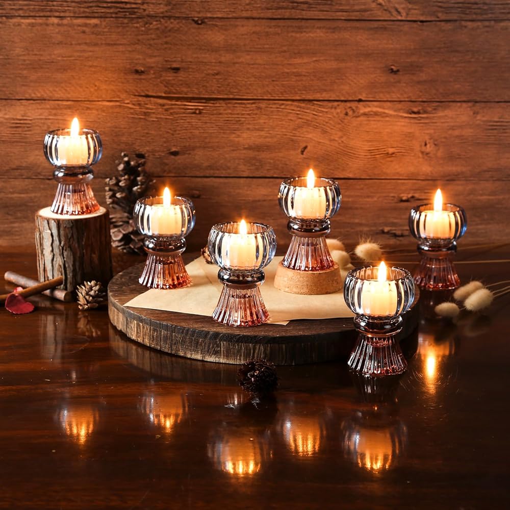 【Multifunctional Glass Candle Holder】GiveU Set of 6 Glass Candle Holders are designed with versatility in mind. You can use them as tealight candle holders on one side and easily transform them into pillar candle holders by flipping them over. This convenient feature allows you to effortlessly switch between the two functions, giving you flexibility in how you showcase your candles.