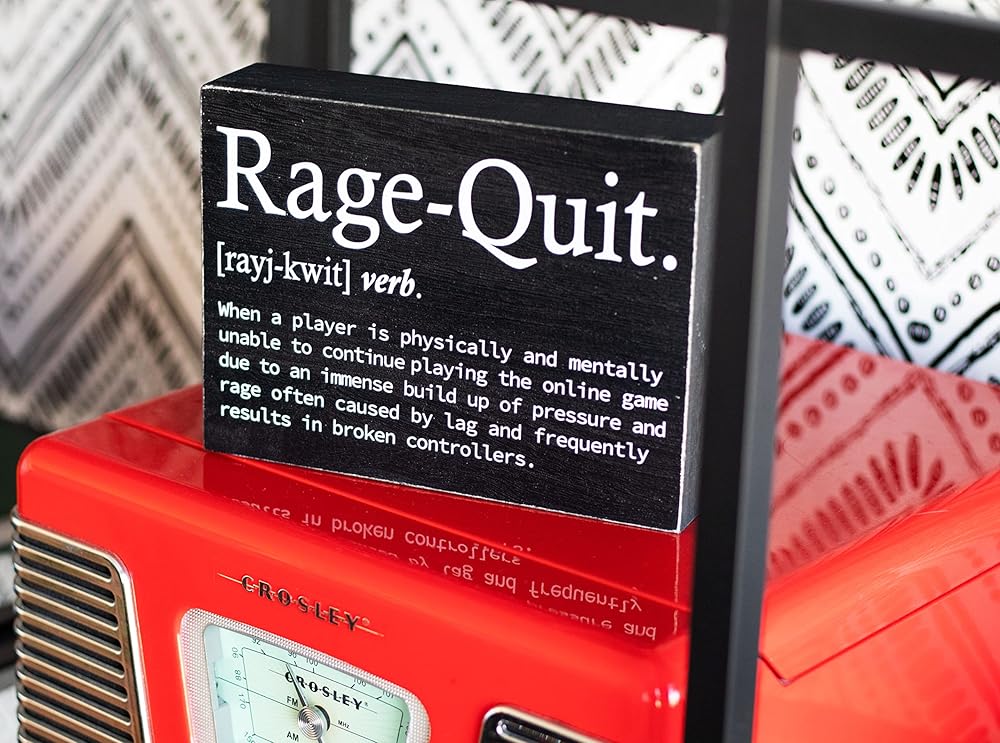 Wood box sign - Black wooden box with white ink measures 6x8inches. We designed this funny box sign to be the ideal gamer room decor for boys or general gaming room decor.