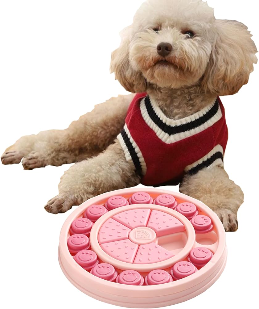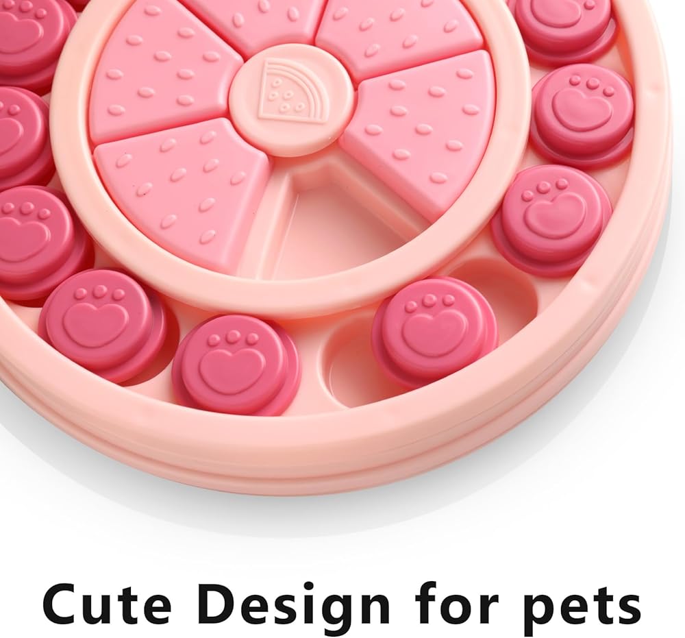 <PET INTERACTIVE TOYS>Put the pet's treat or food on the holes.and hide it.Let our dogs and cats to find it by themselves,Dog move slider and rotate wheel with their paws and nose to reveal treats, It will be exercise the pets sense of smell
