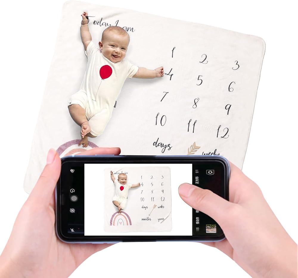🤳【Multifunctional Blanket】: Our baby month milestone blanket is a photo backdrop props when you take photos, a swaddle snuggle blanket in stroller, a playing mat when baby crawl or sit, and a nursing bed blanket when baby sleep. Also the best baby shower gift for your families and friends.