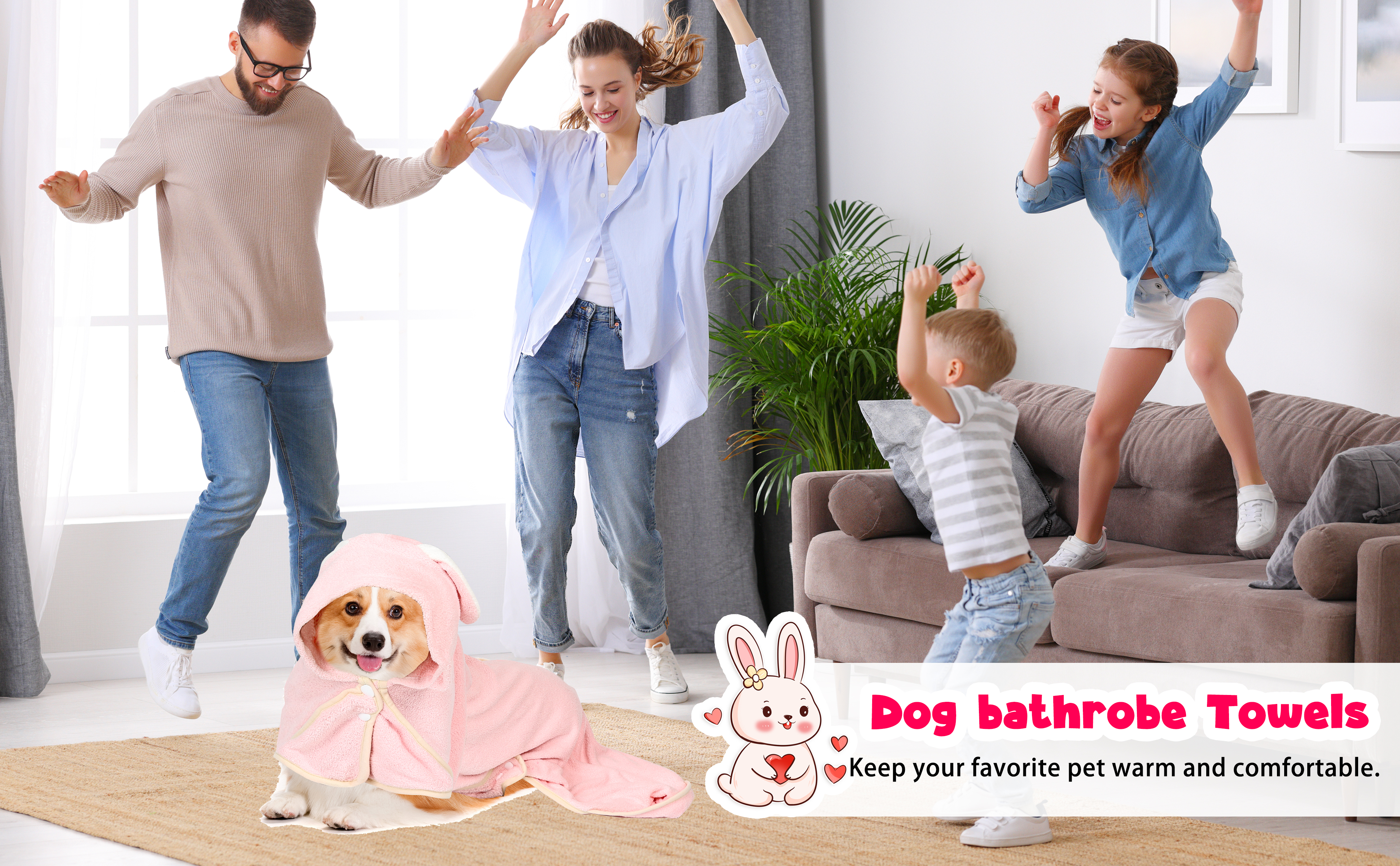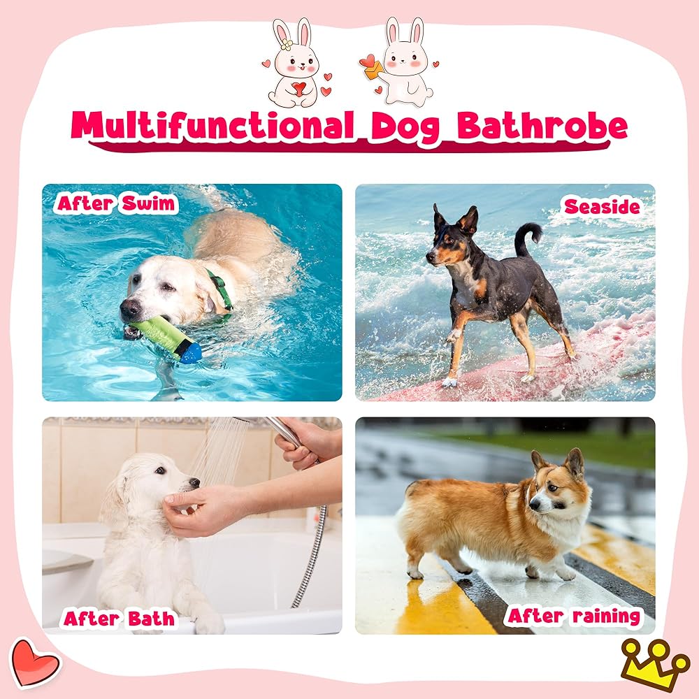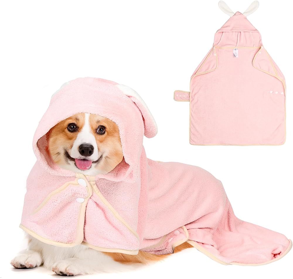 Our pet bathrobe features an adjustable hood, allowing for a perfect fit for cats and dogs of all sizes. The absorbent and quick-drying fabric ensures that your beloved pets stay dry and cozy.